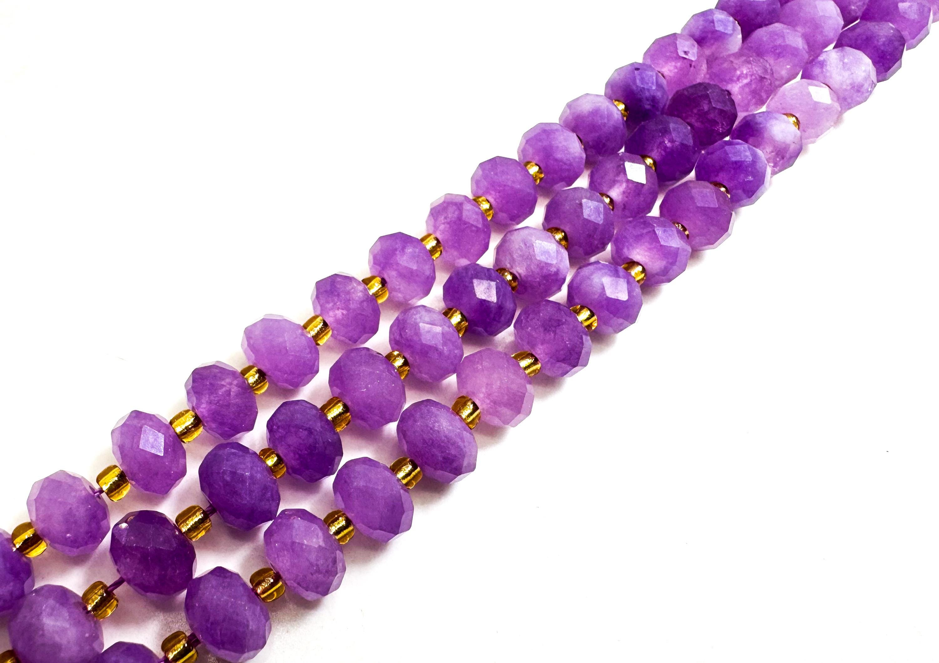 Natural Purple Lepidolite Faceted Rondelle 5mm x 8mm Gemstone Beads - PGS321