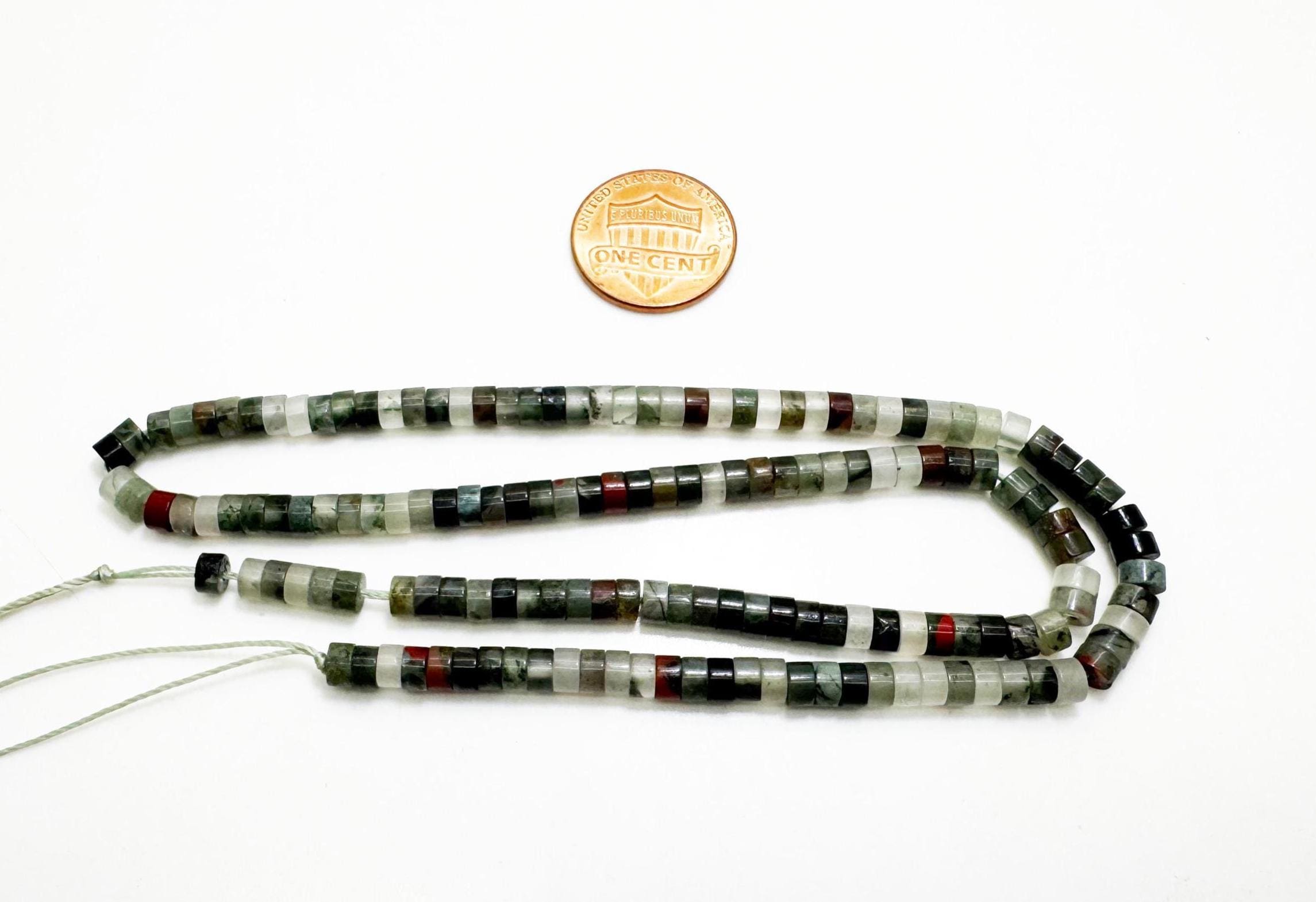These striking African bloodstone heishi (rondelle) beads display deep forest green tones accented with natural red and brown speckles. Each strand has beautiful organic variation, making them perfect for bold yet earthy jewelry designs ✨