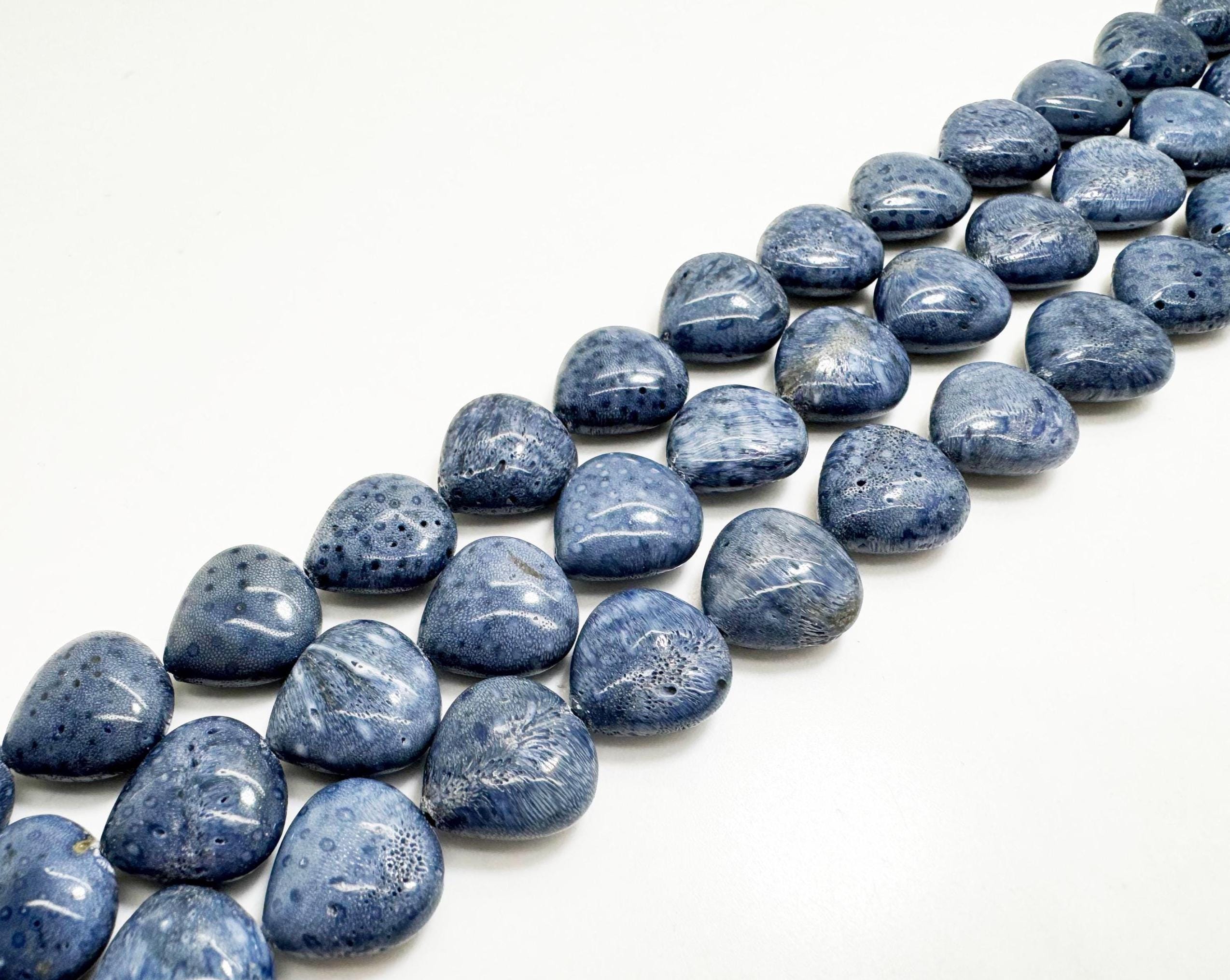 These stunning natural blue coral beads feature an organic teardrop shape with beautiful ocean-blue tones and natural surface textures. Their softly rounded, slightly asymmetrical form gives each strand a natural, earthy elegance—perfect for handcrafted jewelry designs.