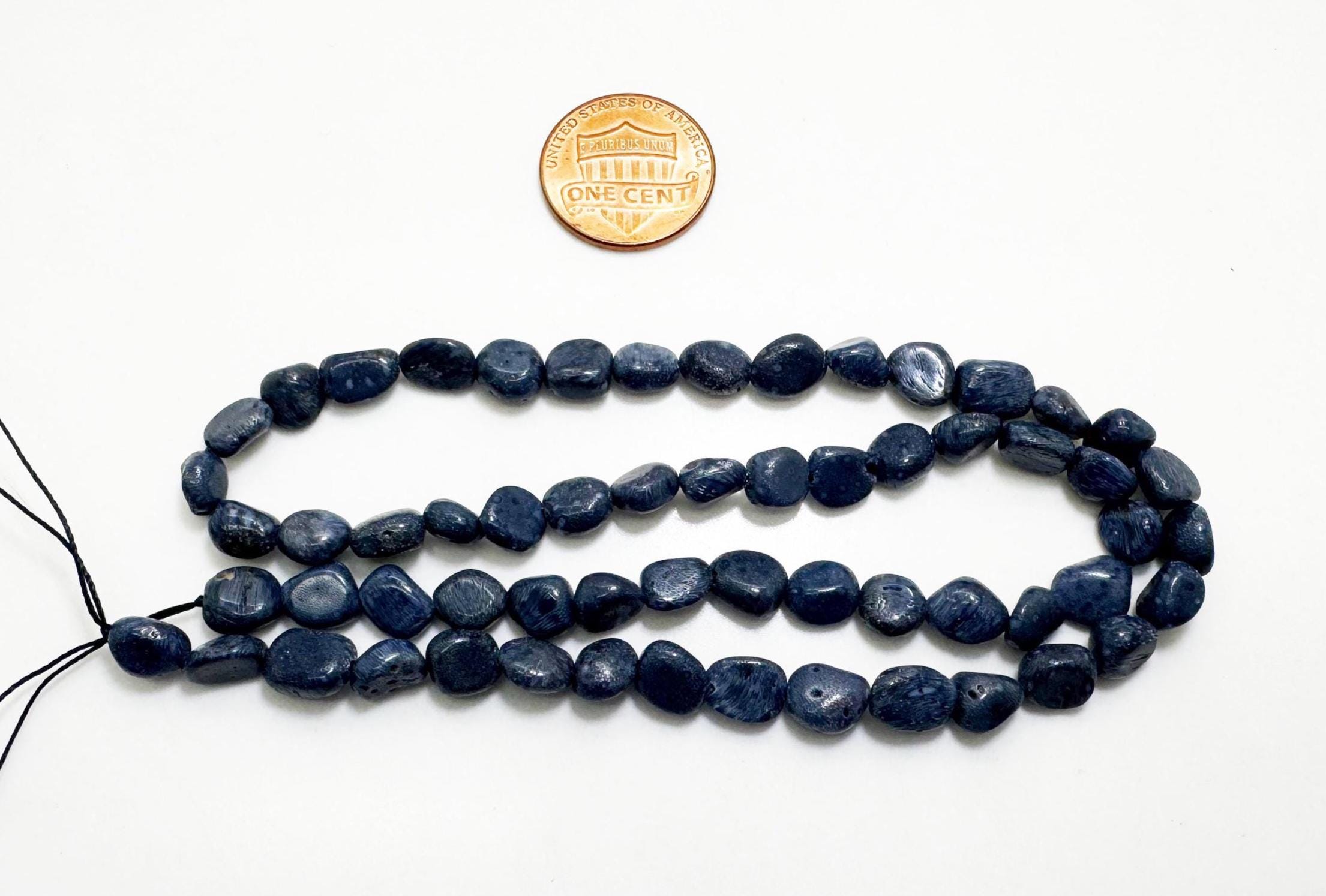 These lovely natural blue coral beads are cut into smooth, organic pebble shapes with assorted sizing and rich ocean-blue tones. Their soft, rounded form and natural texture make them perfect for delicate, earthy, and coastal-inspired jewelry designs.