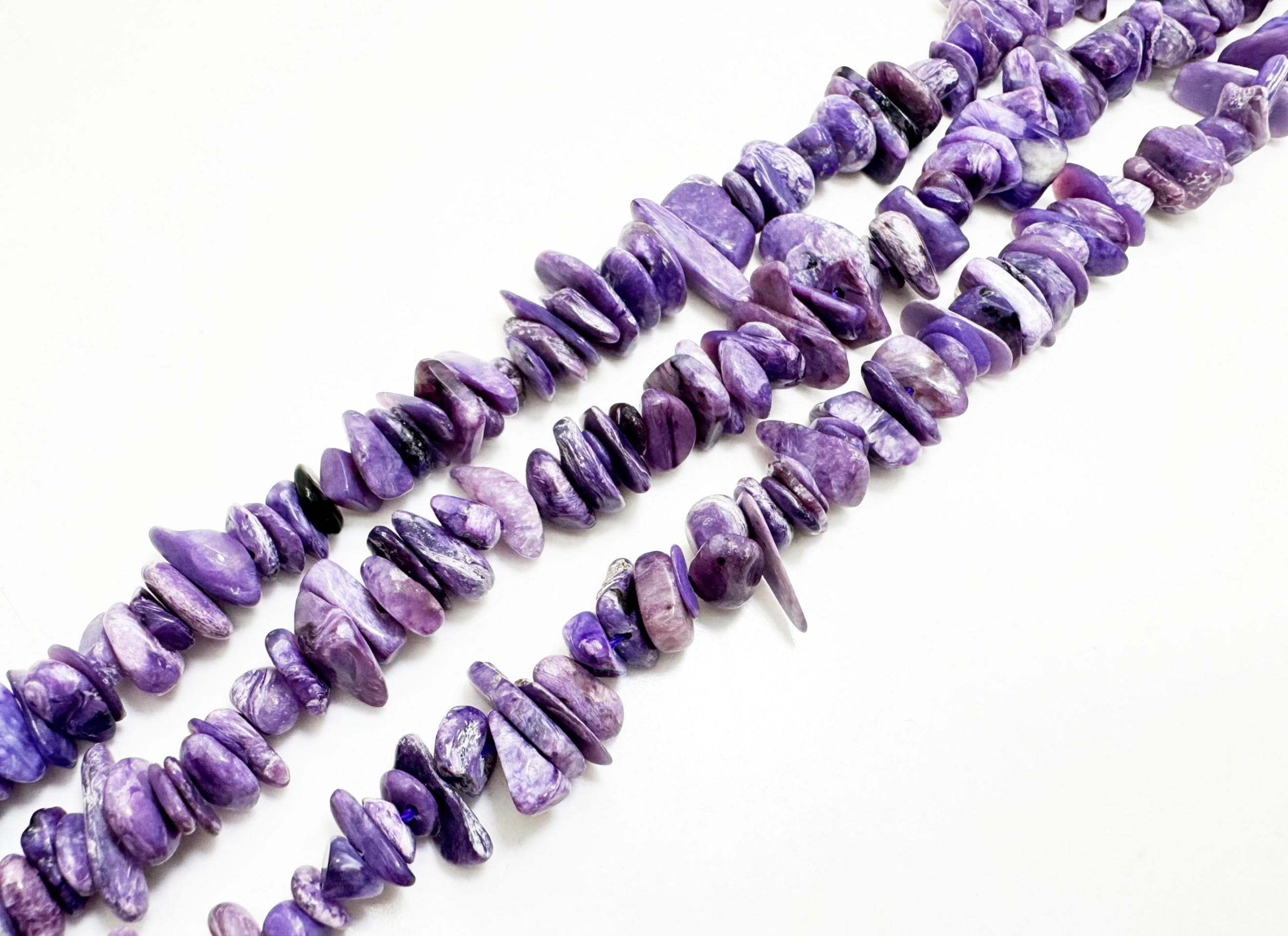 Beautiful, genuine charoite beads featuring rich purple hues with natural swirling patterns. Each bead is freeform and unique, making every strand one of a kind. Perfect for jewelry makers and crystal lovers alike.