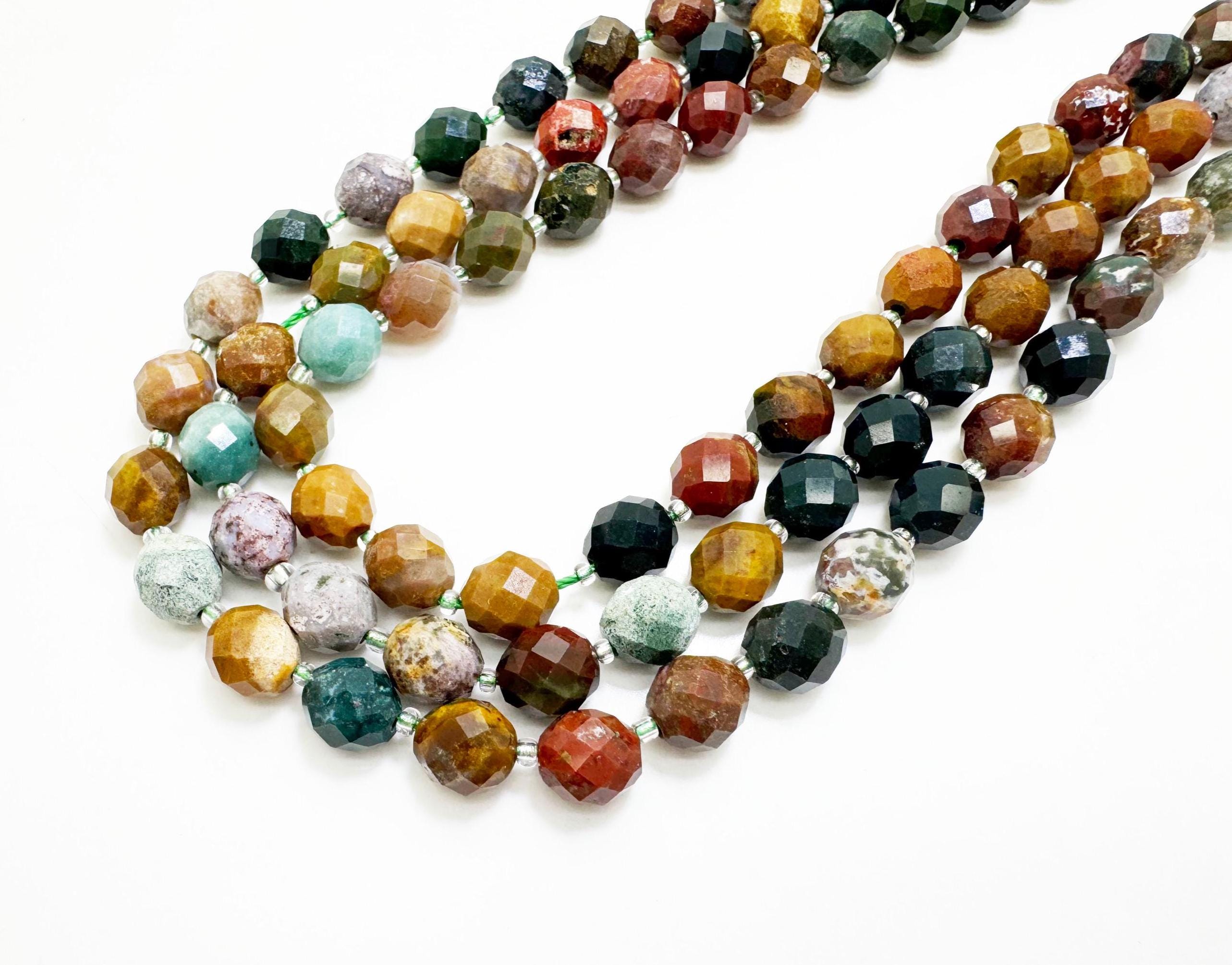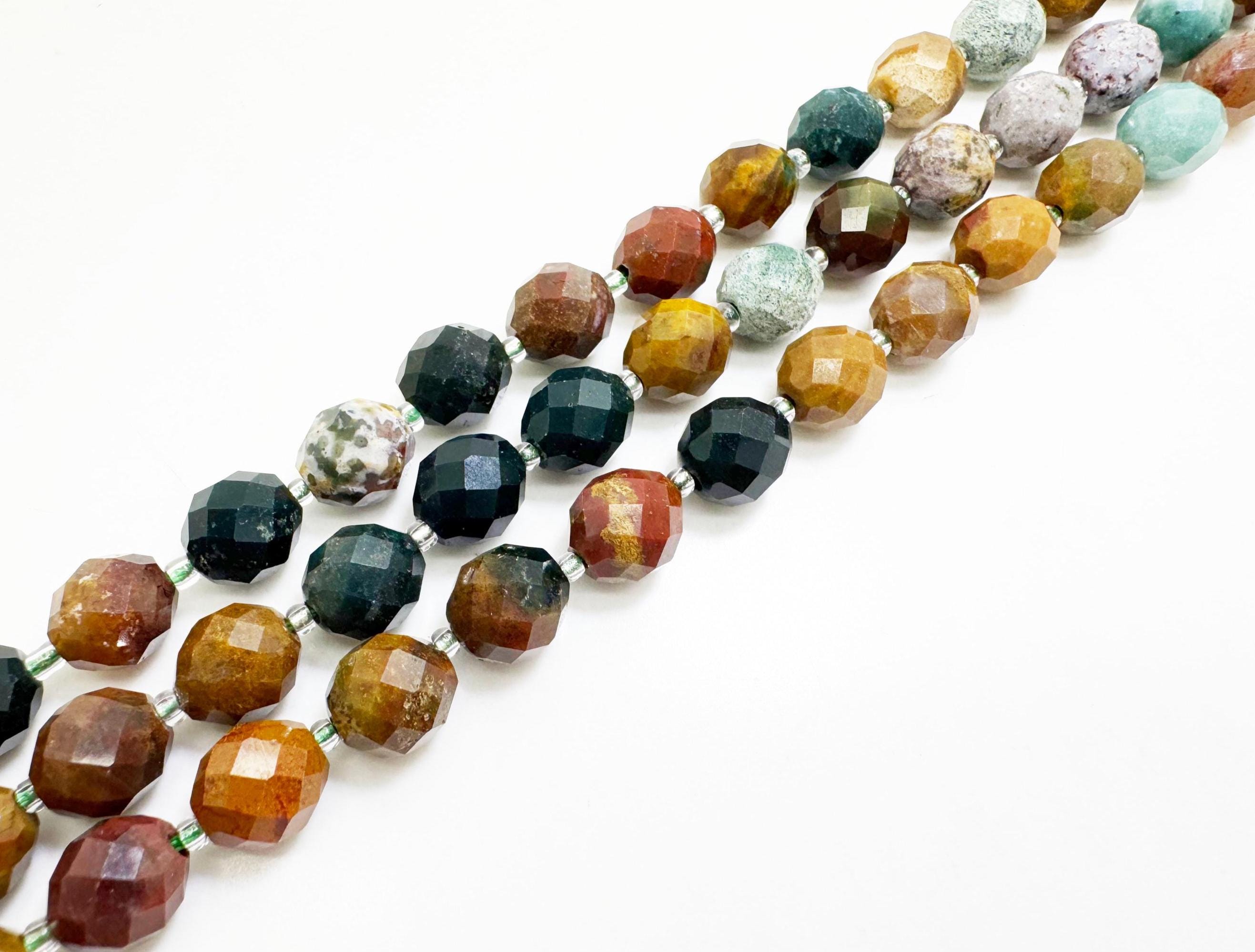 These beautiful Fancy Jasper beads display a rich mix of earthy tones including green, mustard yellow, brown, cream, red, and mossy patterns. Each bead is naturally unique, creating a warm, organic palette that’s perfect for nature-inspired and boho-style jewelry. The faceted oval cut adds subtle sparkle while keeping the stone’s natural character.