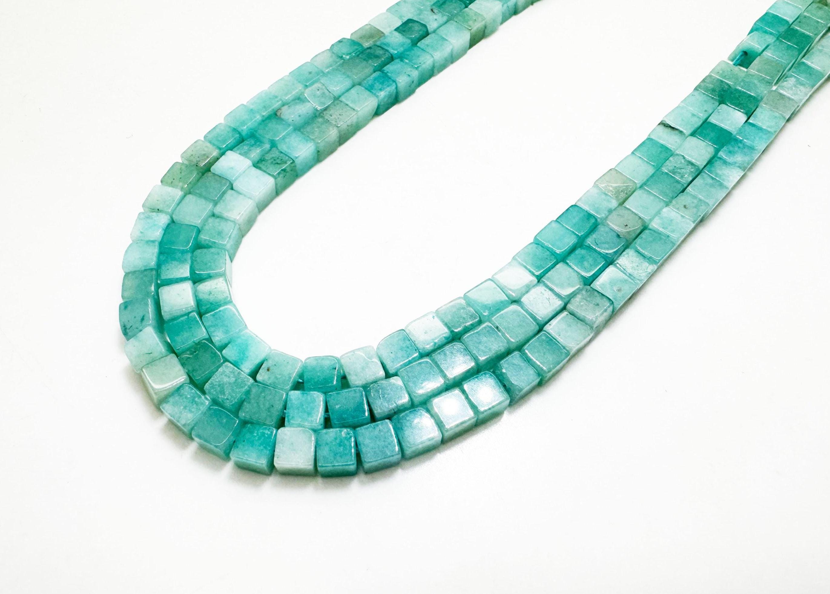 ๐ Natural Green Amazonite Cube Beads