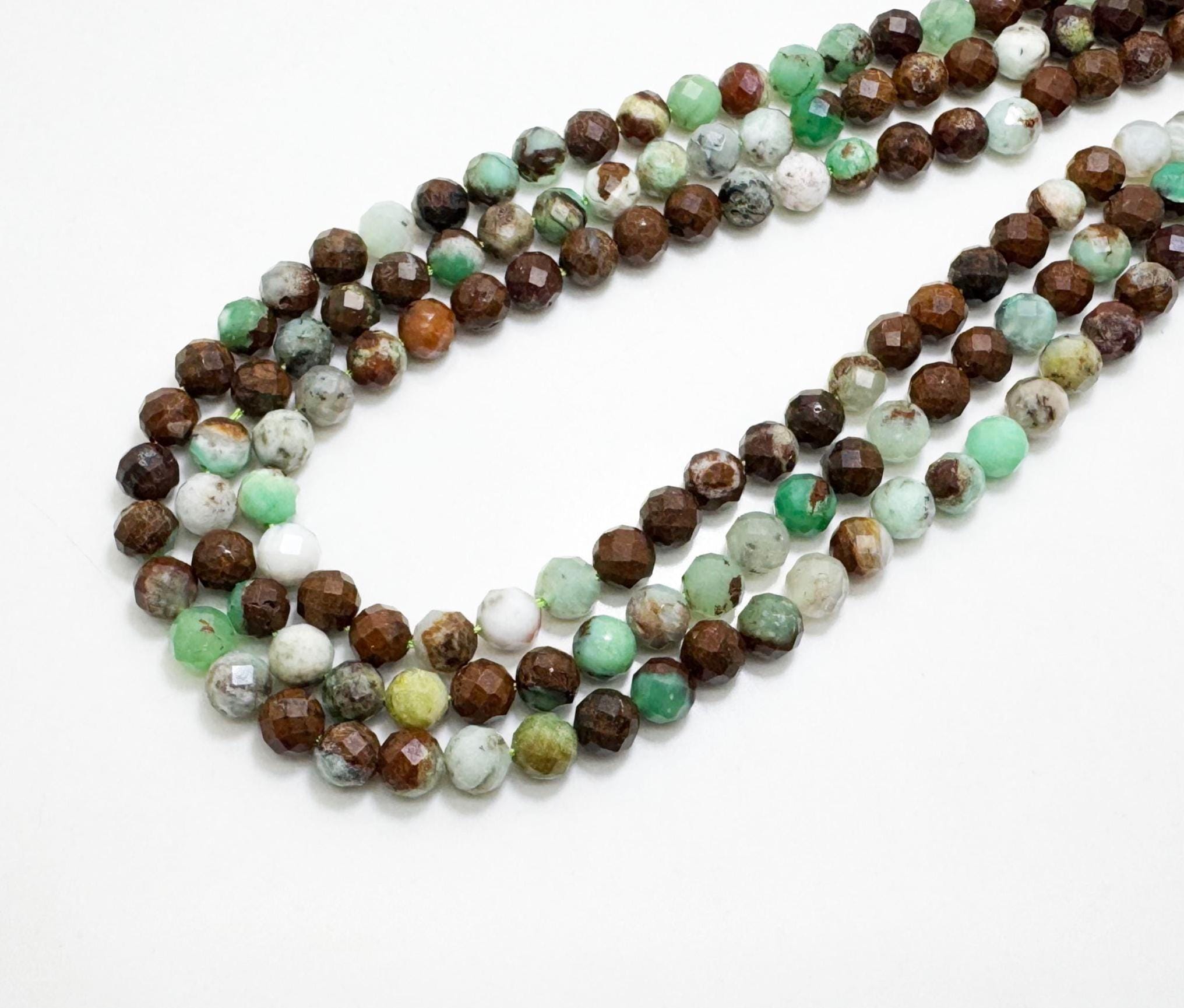 Elevate your jewelry designs with these stunning natural faceted chrysoprase beads! Each bead showcases a unique mix of vibrant green hues, soft pastel tones, and natural inclusions, making them perfect for one-of-a-kind creations. The faceted surface enhances their natural glow, adding elegance and depth to any piece.
