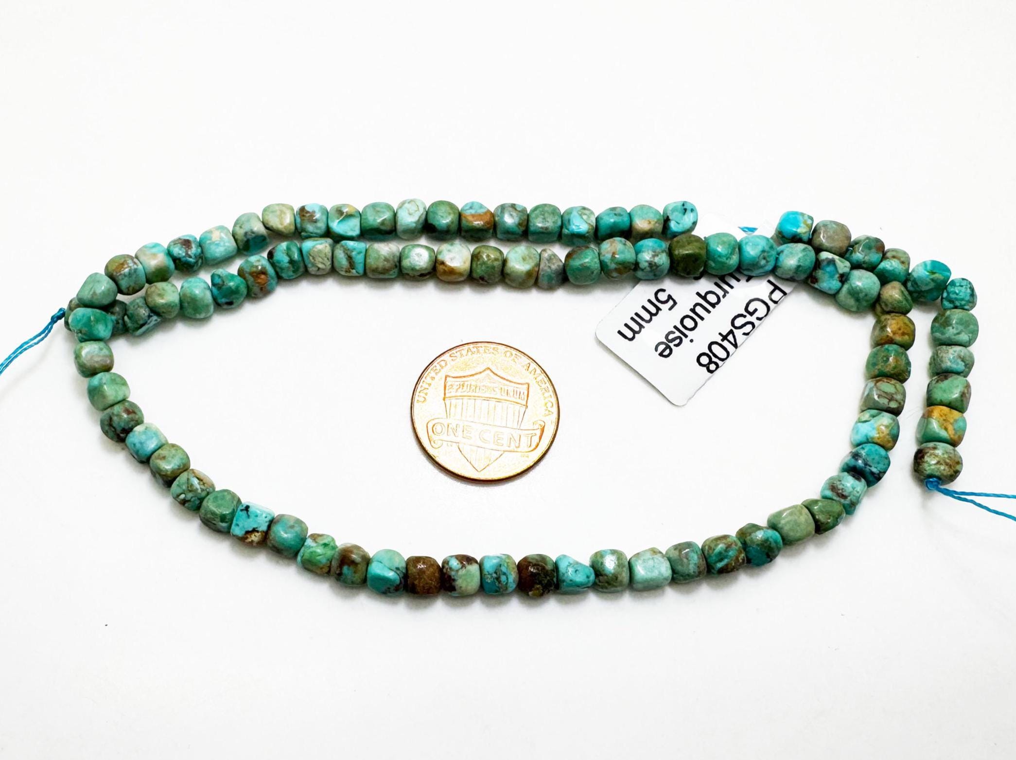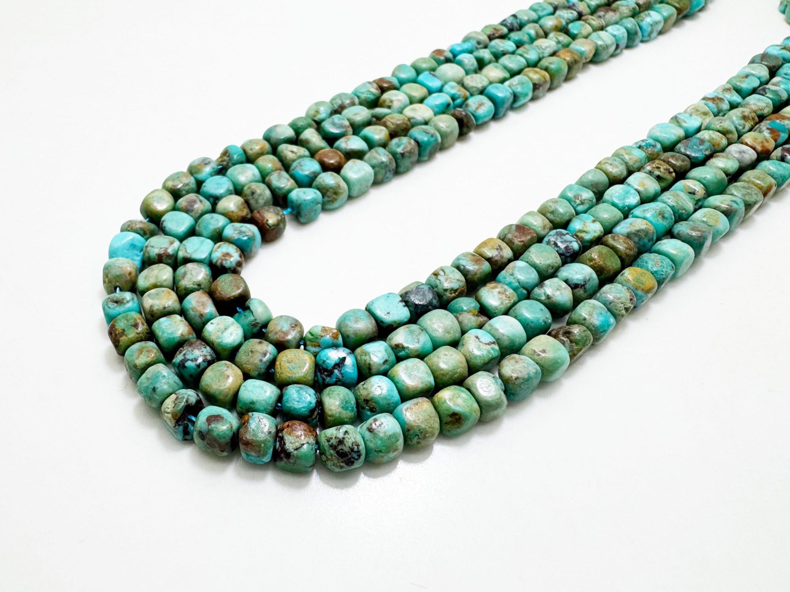Each strand is unique, with natural variations in color and matrix that highlight the beauty of genuine turquoise.
