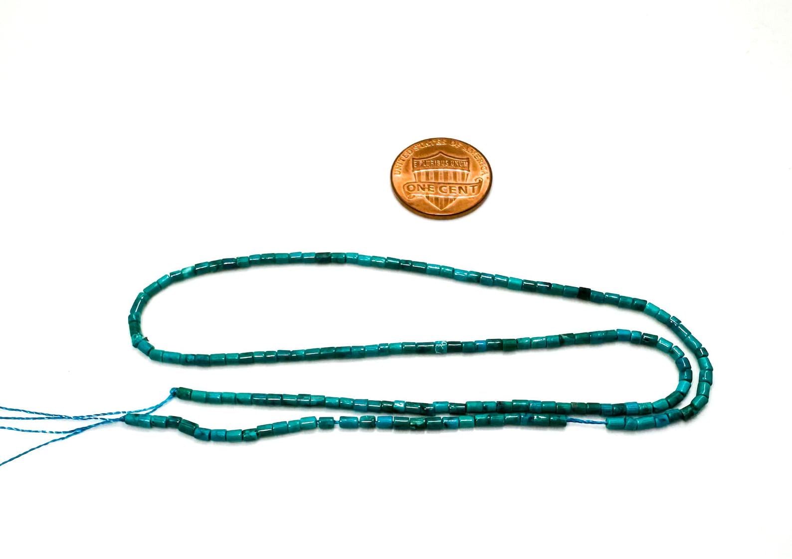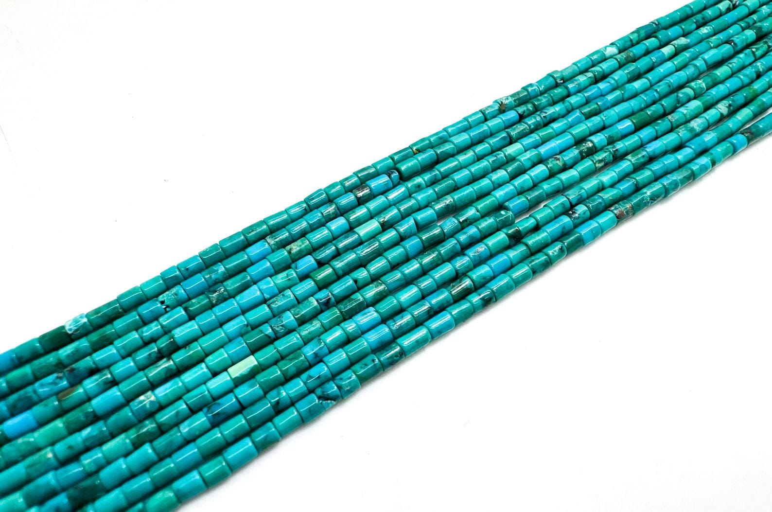 These authentic Kingman Turquoise heishi beads are cut into sleek, cylindrical shapes with a beautiful range of blue-green tones and natural matrix. Sourced from the famous Kingman mine in Arizona, each bead measures approximately 2mm, with about 155 beads per strand—perfect for layering necklaces, stacking bracelets, dainty earrings, or detailed beading projects.