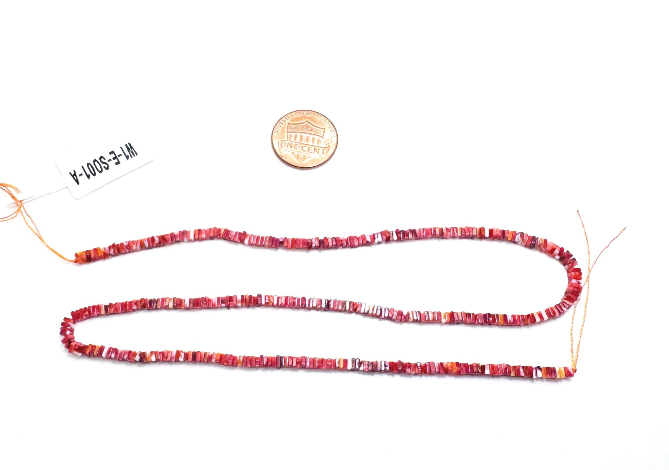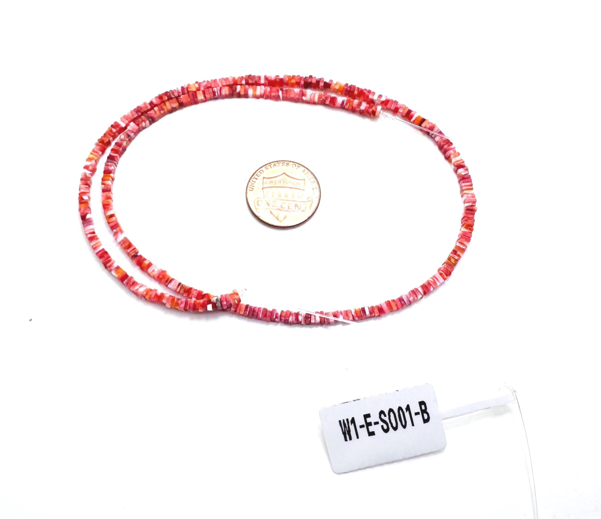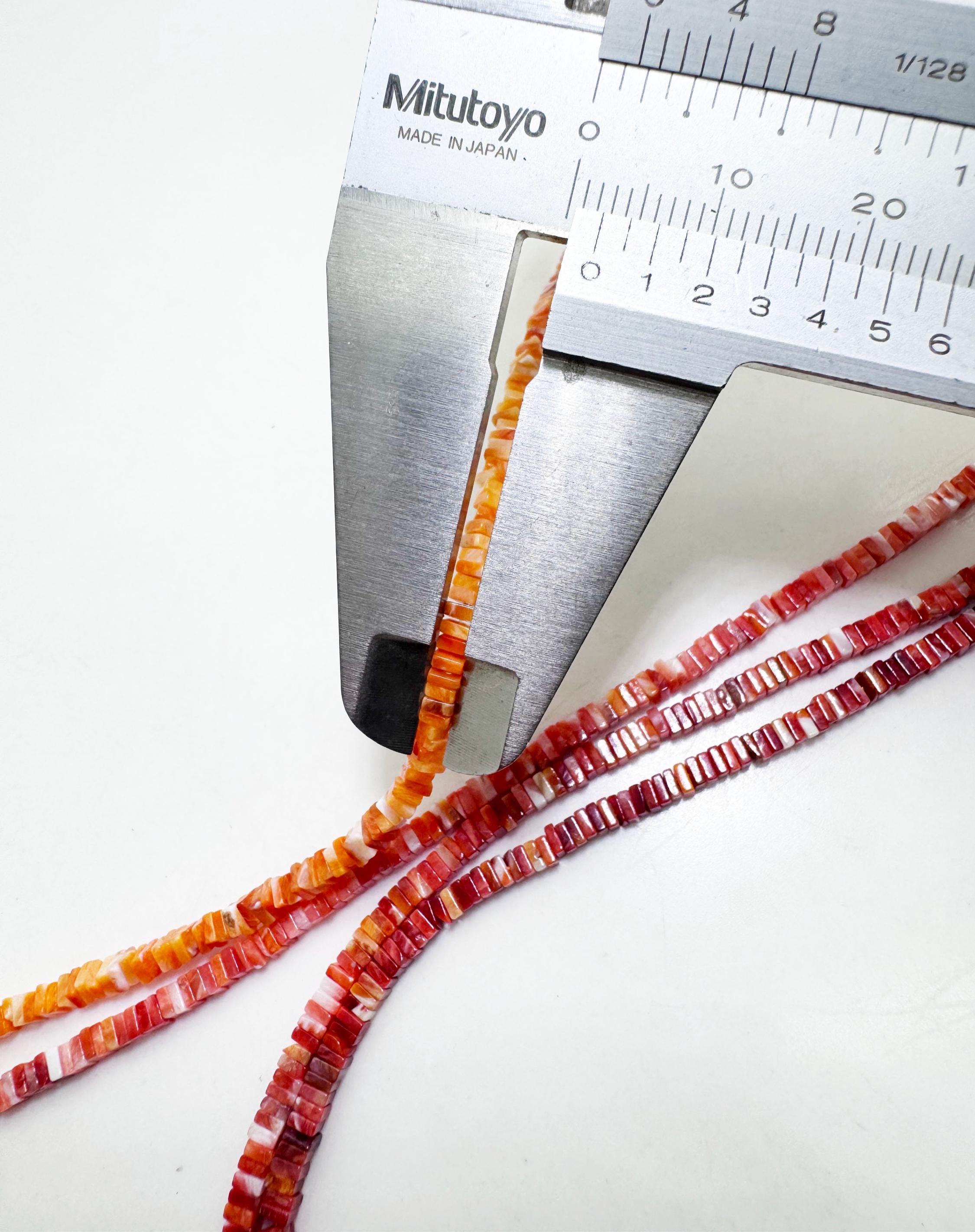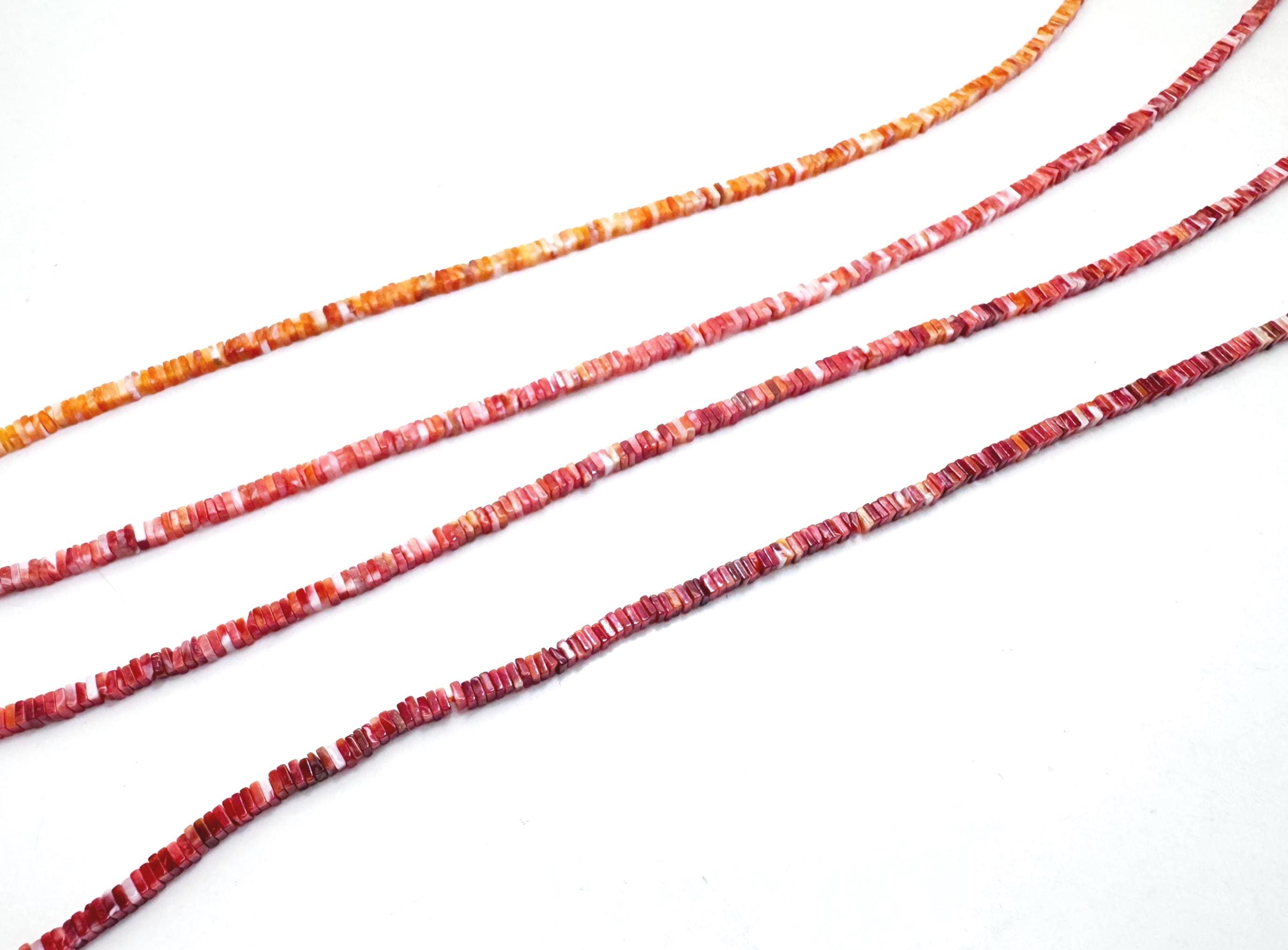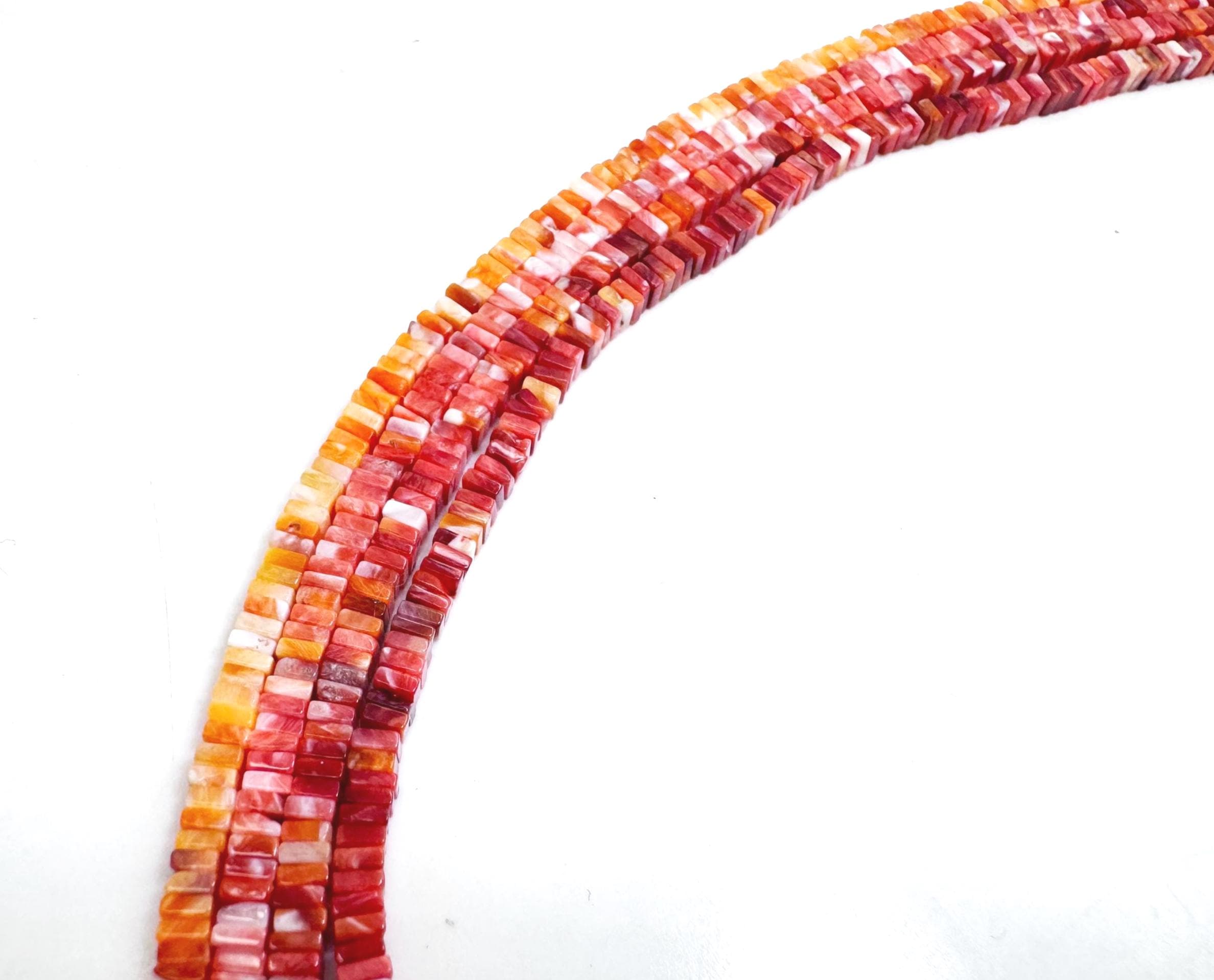 These unique spiny oyster shell beads are cut into a flat square shape, offering a modern twist on classic heishi styles. The beautiful gradient ranges from bright orange to deep red, adding warmth and character to any design.