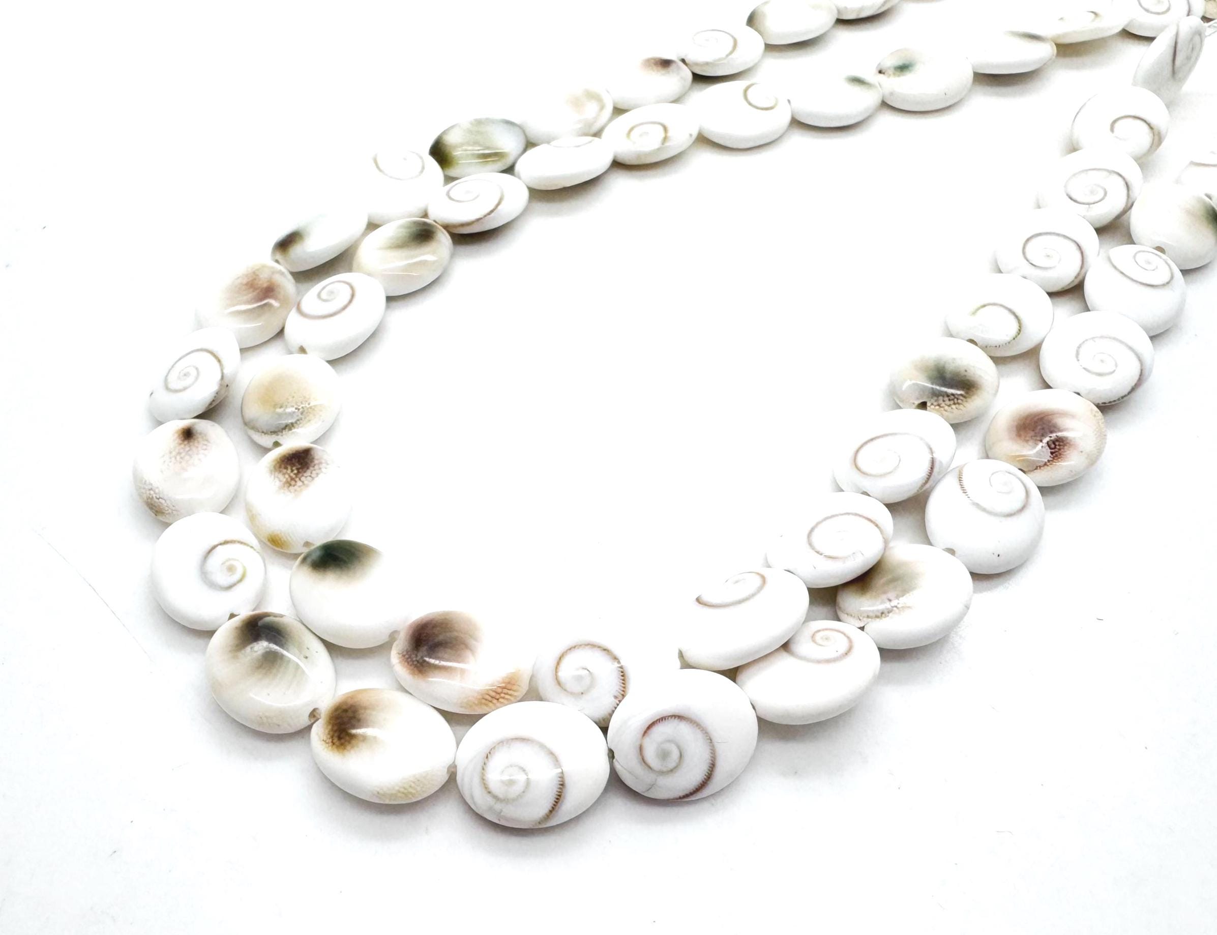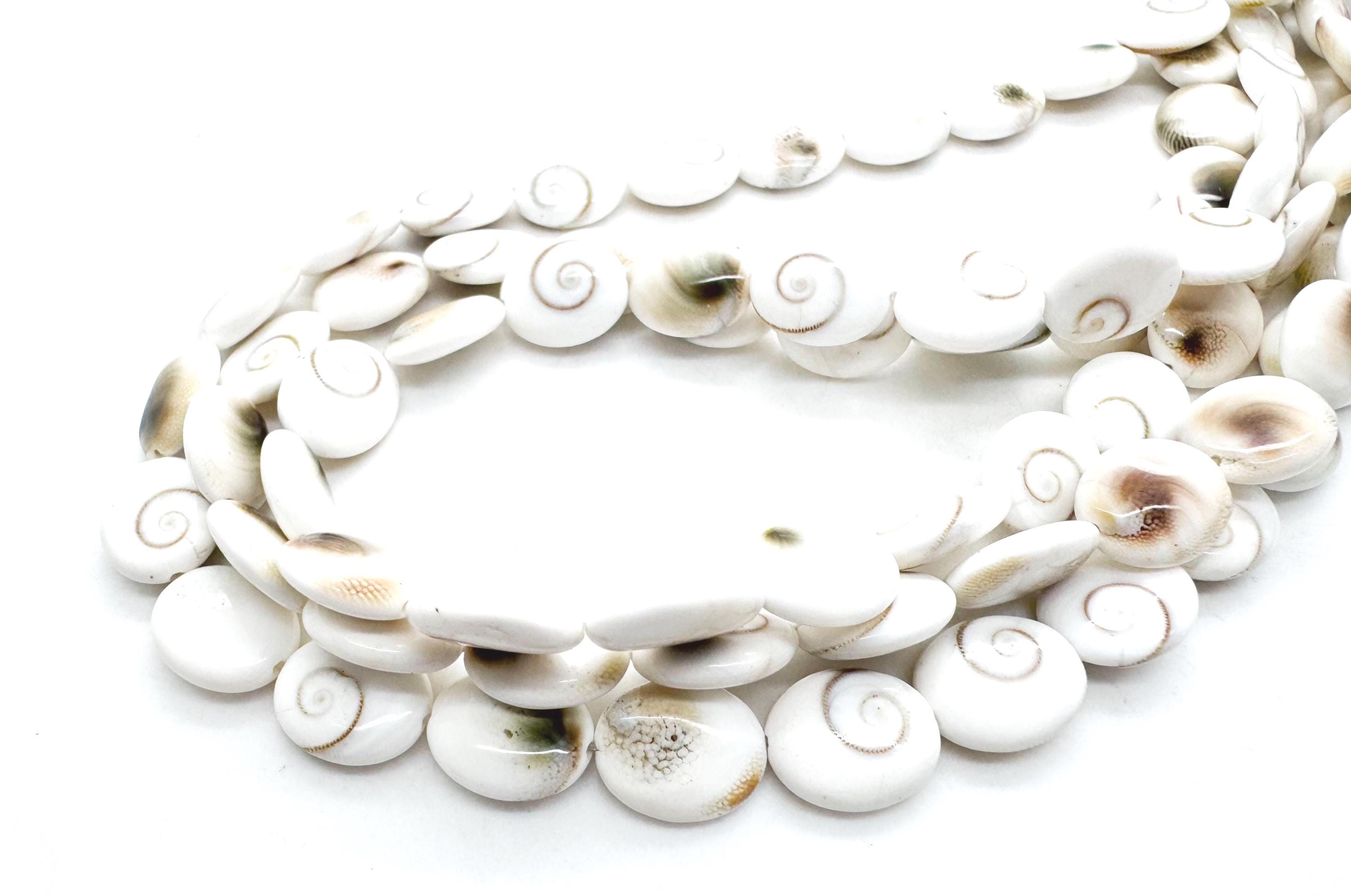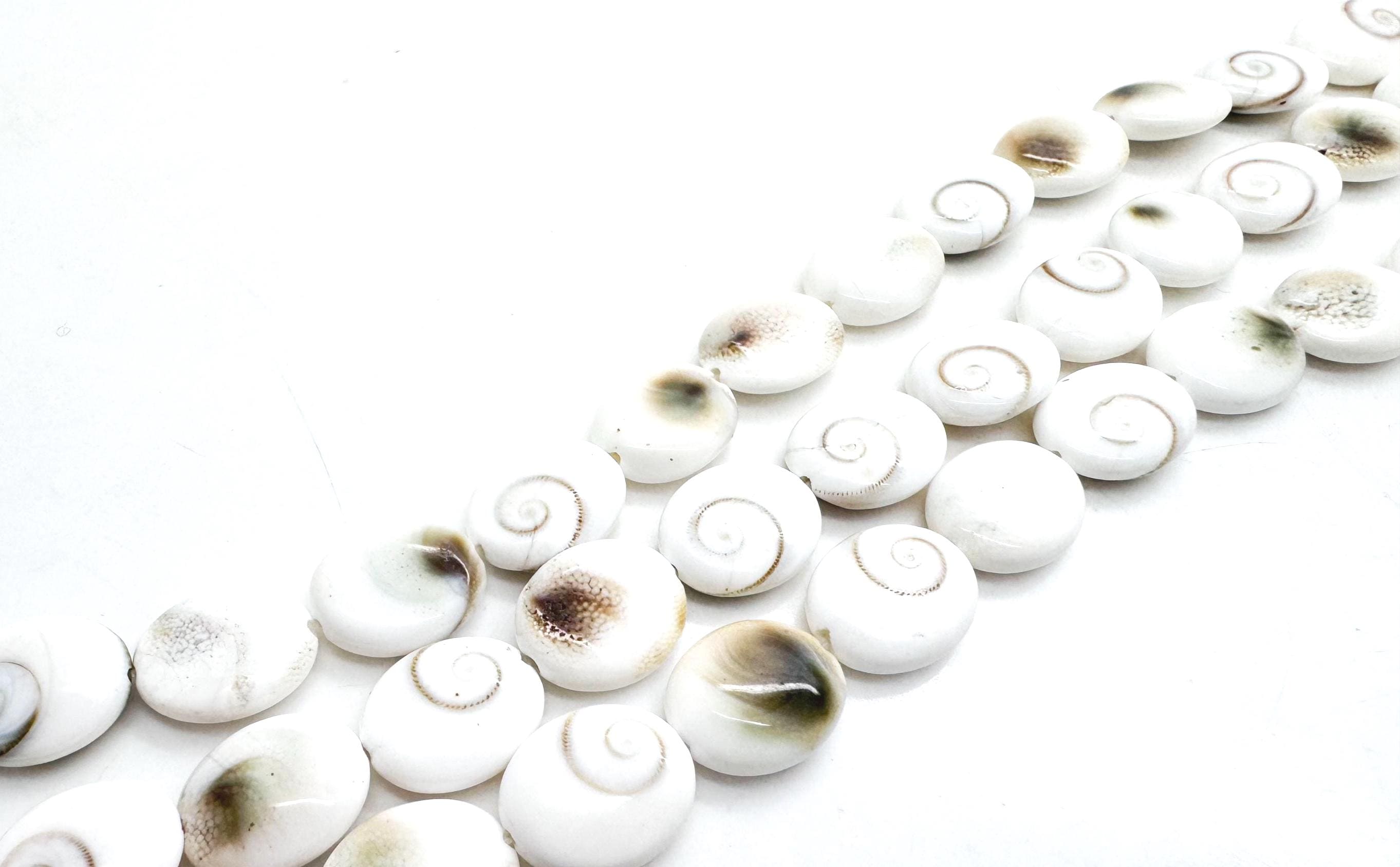 Bring a piece of oceanic mystery to your next design with these natural Shiva Eye Shell beads. Each bead features the iconic "eye" spiral on a clean, creamy white background, with a beautifully polished oval shape. Known as the "Eye of Shiva," these shells have been revered for centuries across many cultures for their unique geometry and spiritual significance.
