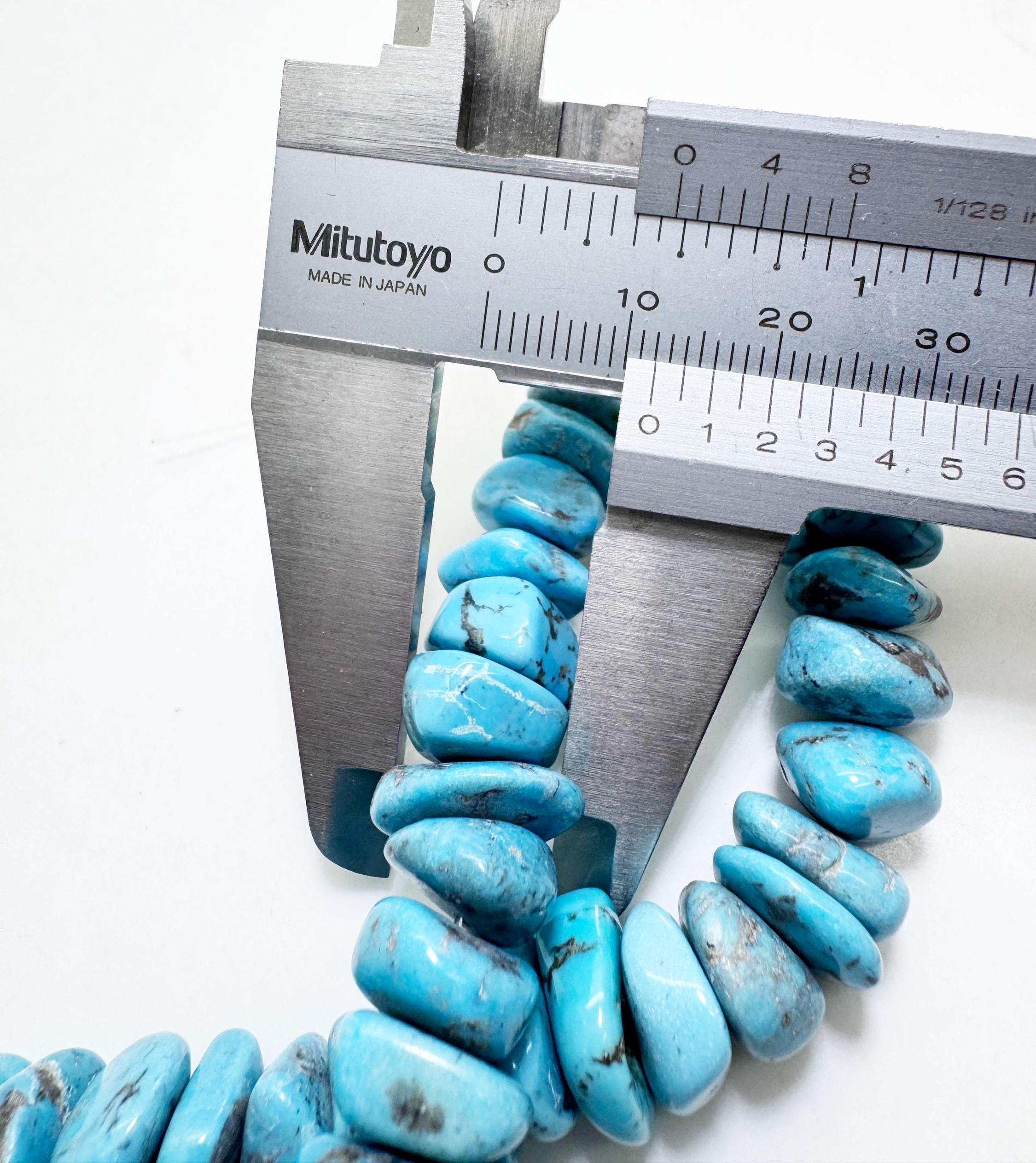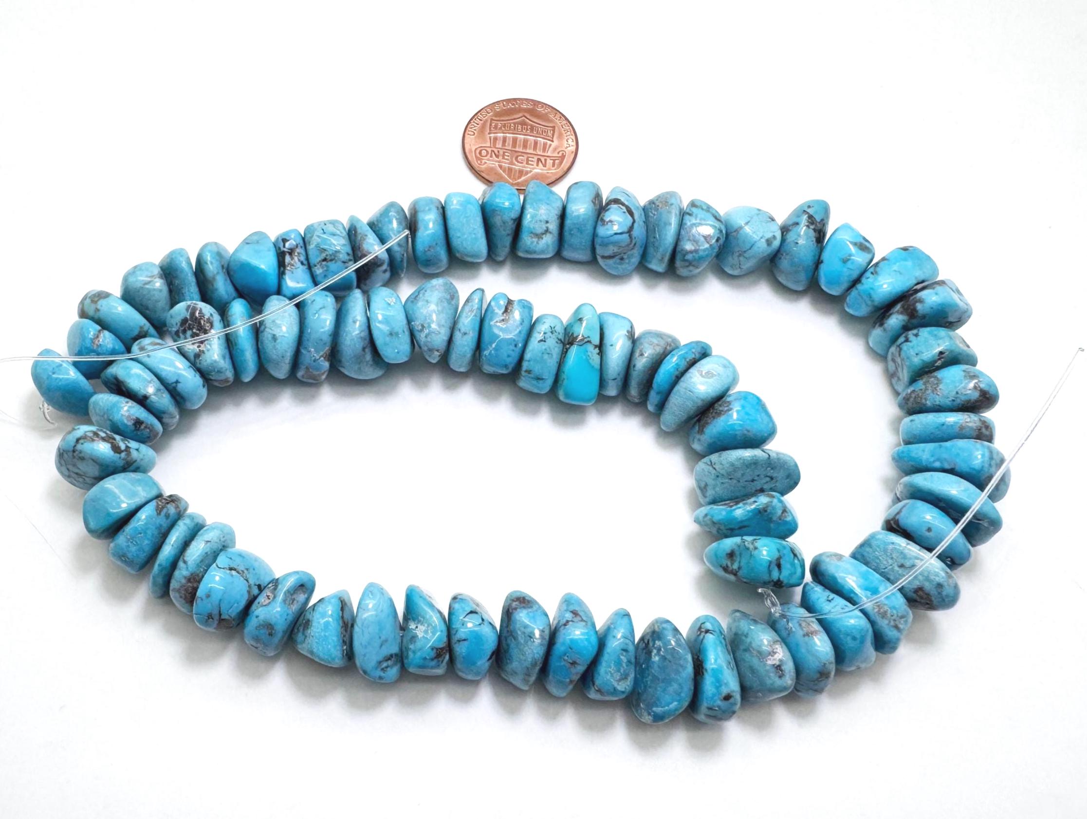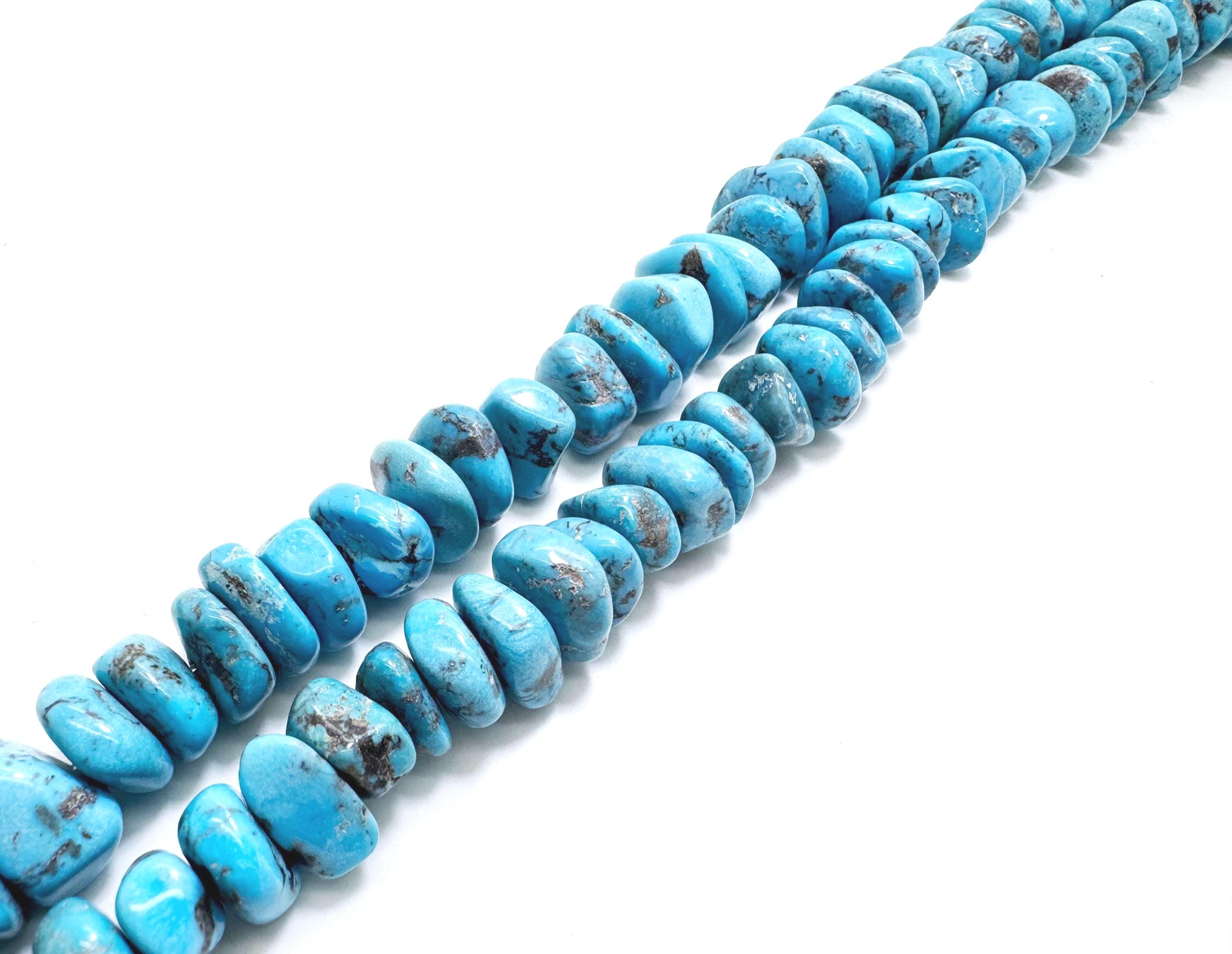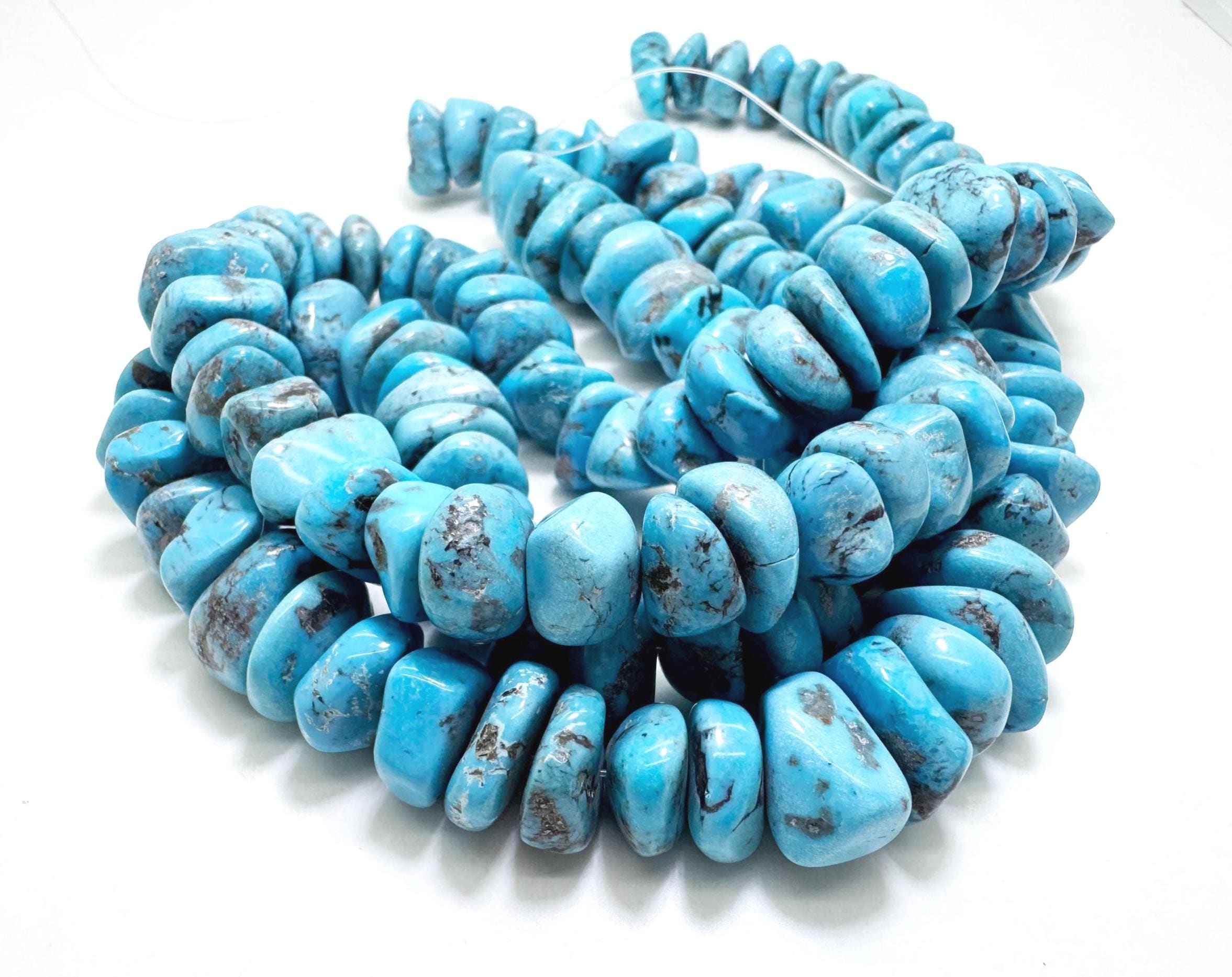 Direct from the world-famous Kingman Mine in Arizona, these turquoise nuggets are a true treasure. Each bead showcases the vibrant, "Robin’s Egg" blue that Kingman is known for, accented by a beautiful natural dark matrix. These are chunky, organic pebble shapes that bring a high-end, rugged elegance to any design.