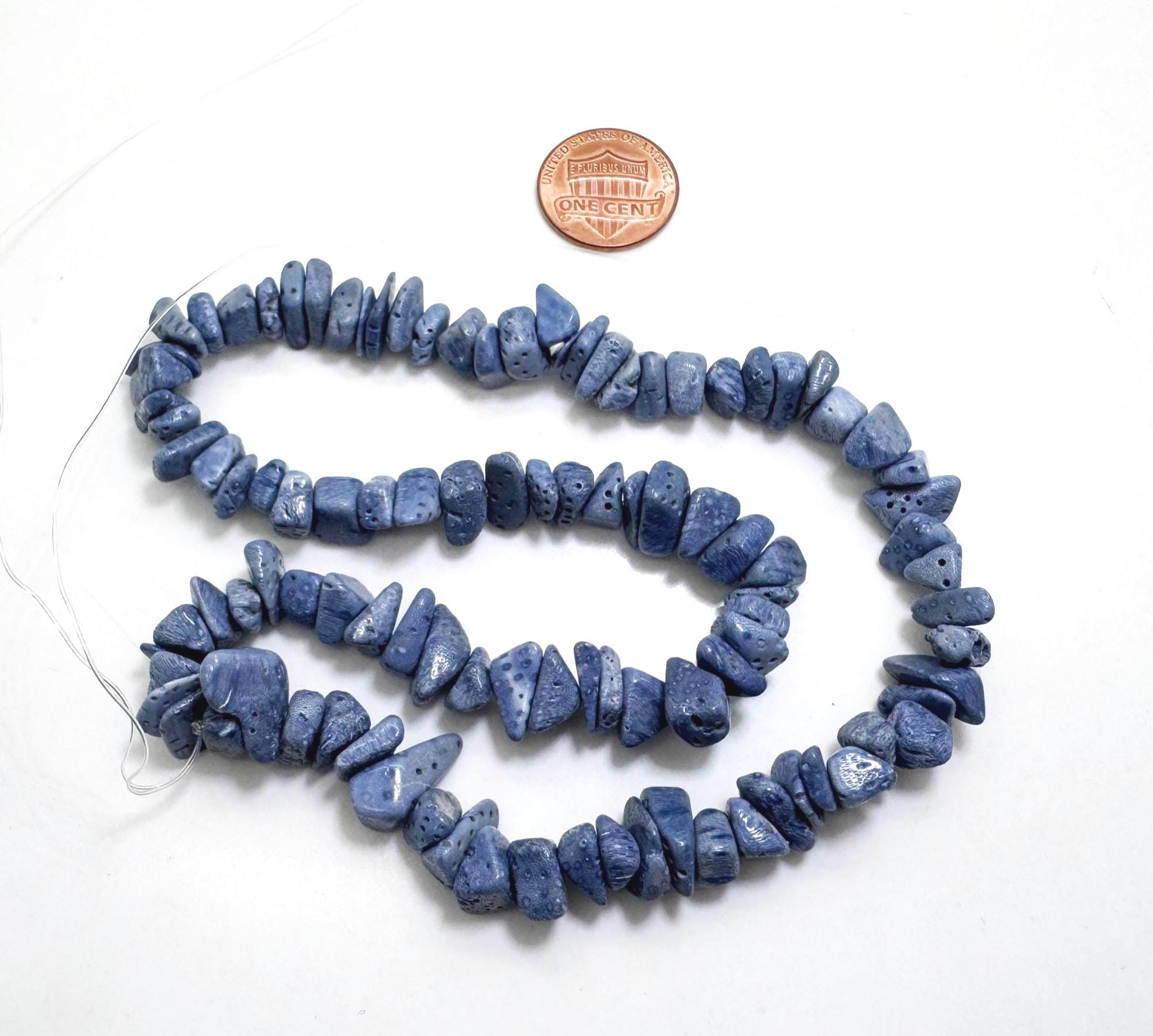 Add a touch of the ocean to your designs with these genuine Natural Blue Coral nuggets. These beads feature the classic porous texture of sponge coral, colored in a beautiful range of denim and indigo blues. Their organic, irregular shapes provide a wonderful tactile quality that is perfect for beach-inspired or "Boho-Luxe" jewelry.