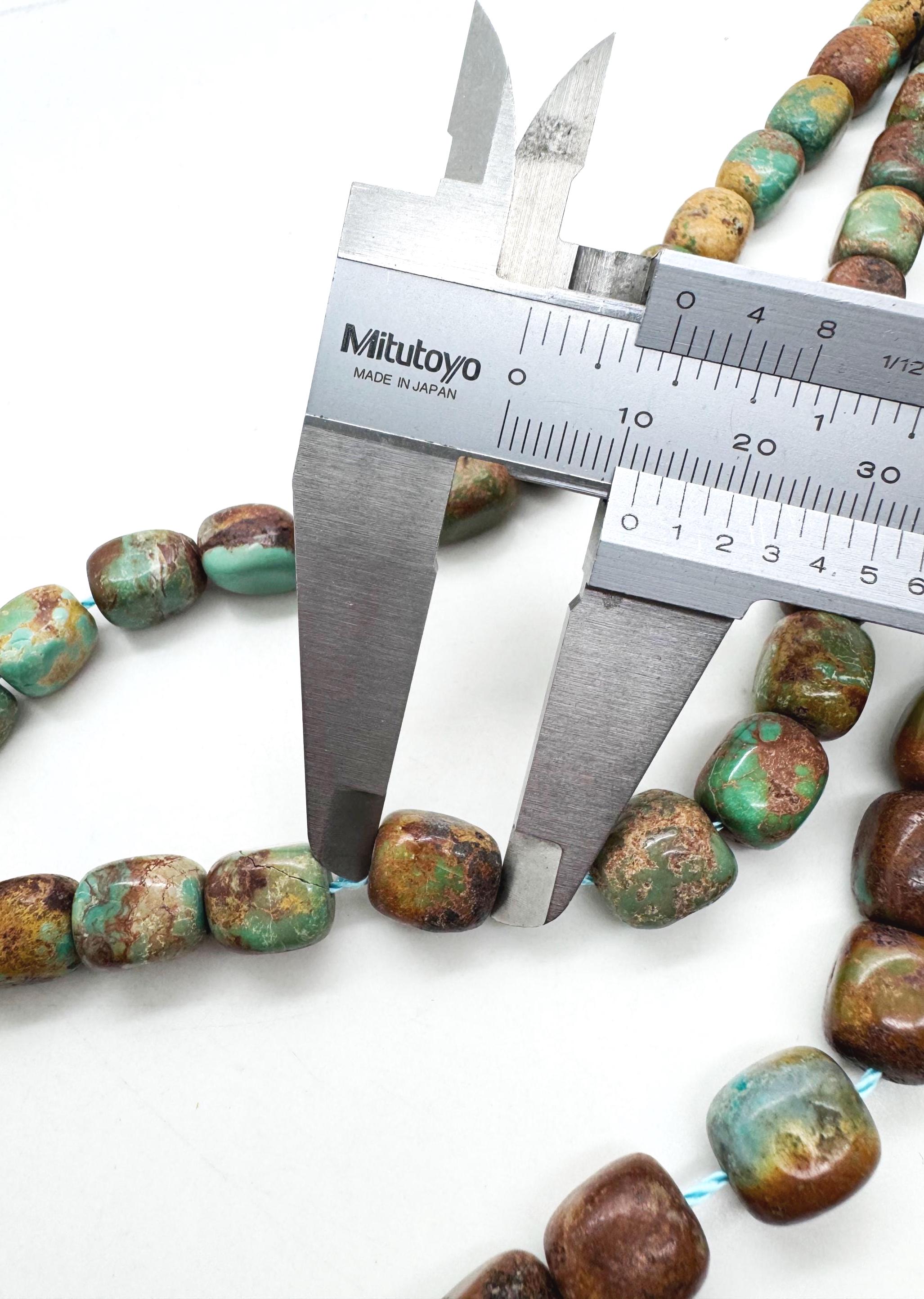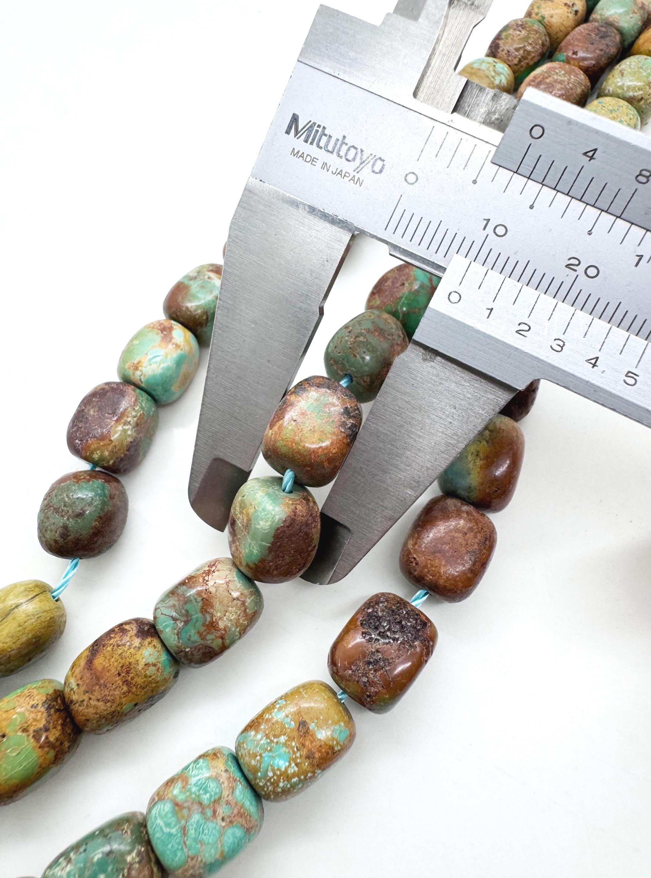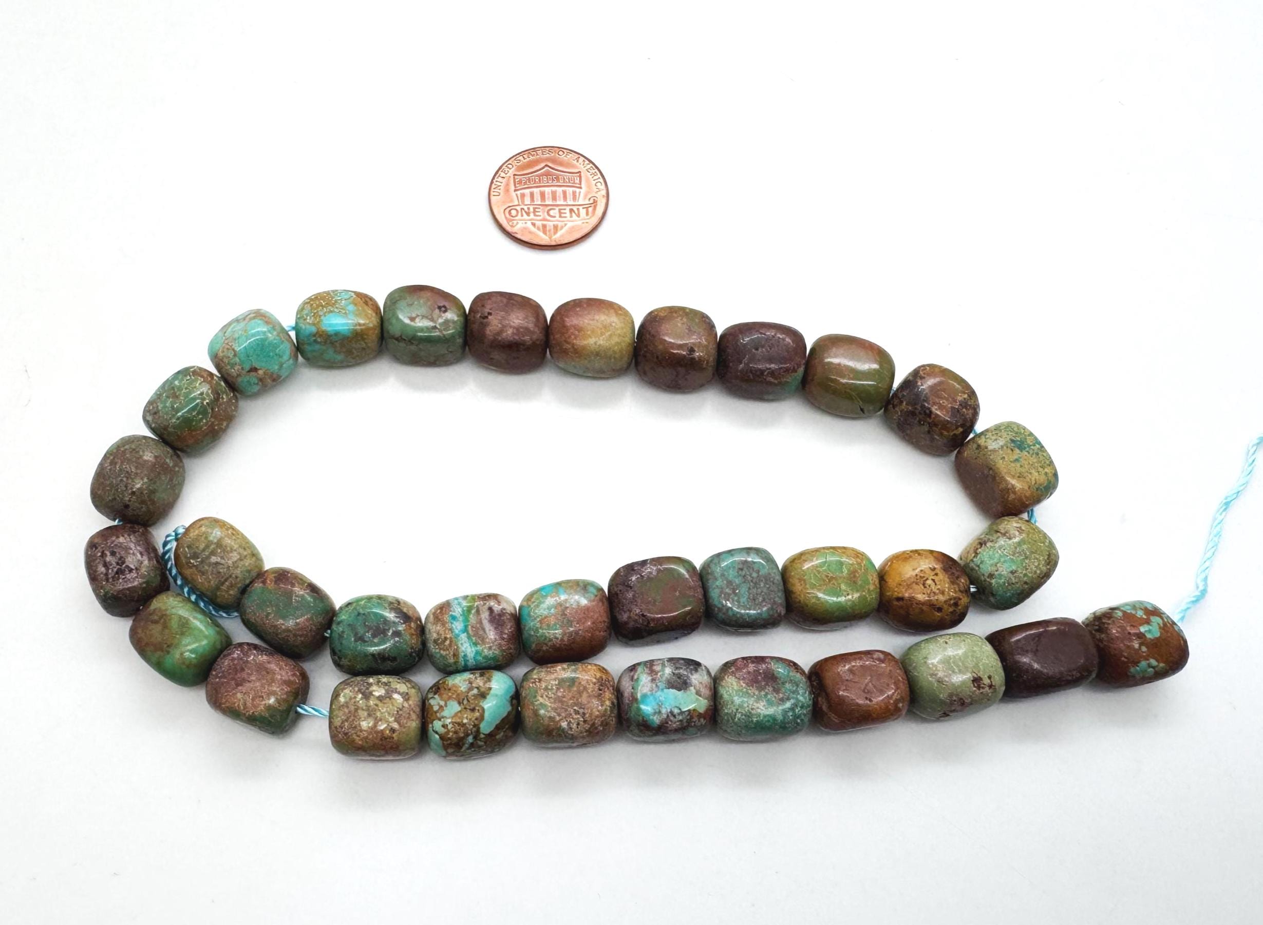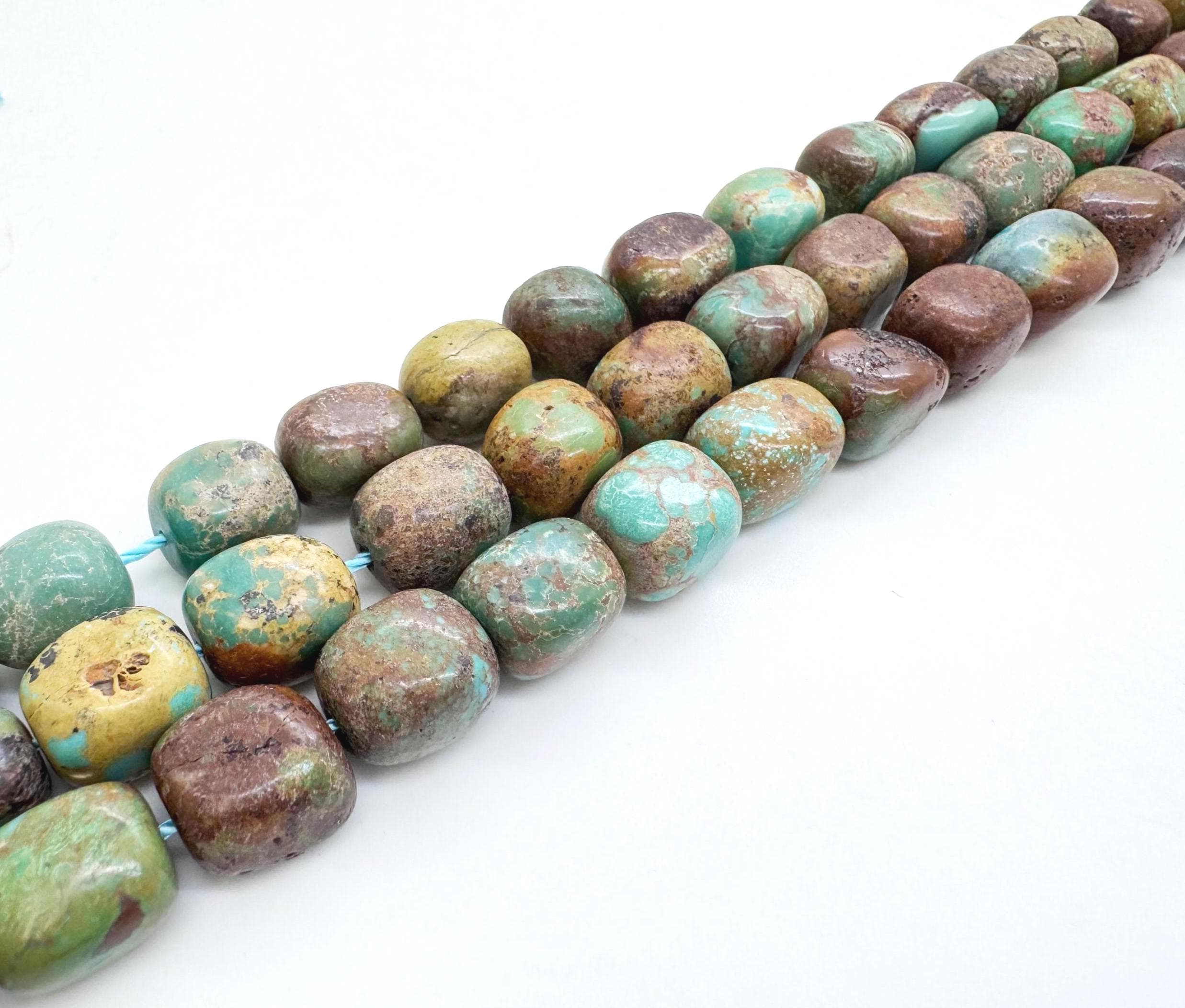 ring the raw beauty of nature to your jewelry collection with these Natural Hubei Turquoise beads. These beads showcase a striking variety of shades, ranging from deep forest greens to vibrant sky blues, all interwoven with a rich, dark chocolate and copper-toned matrix. Their smooth, rounded "cushion" nugget shape offers a substantial, high-end feel that works beautifully in both modern and rustic designs.