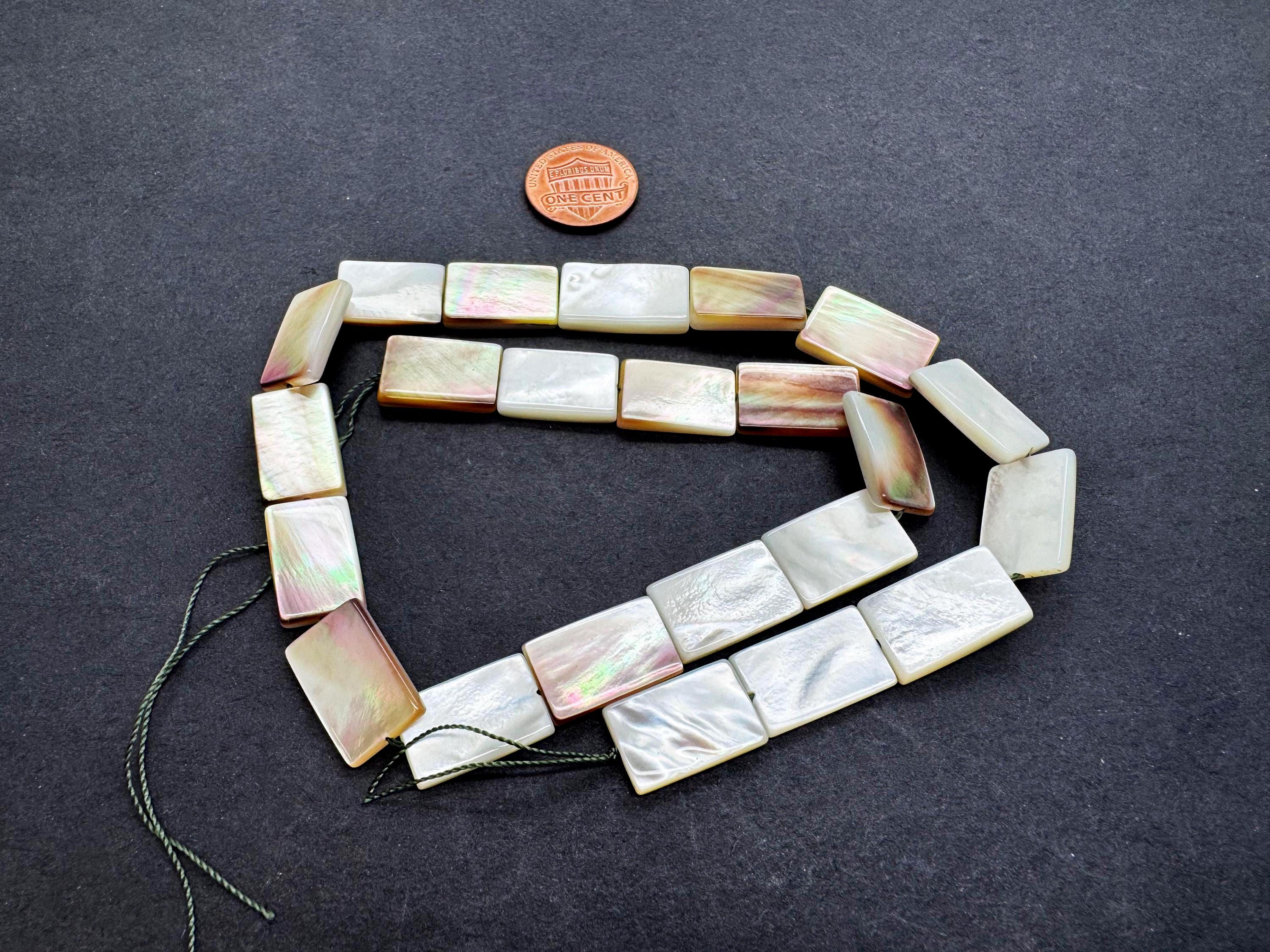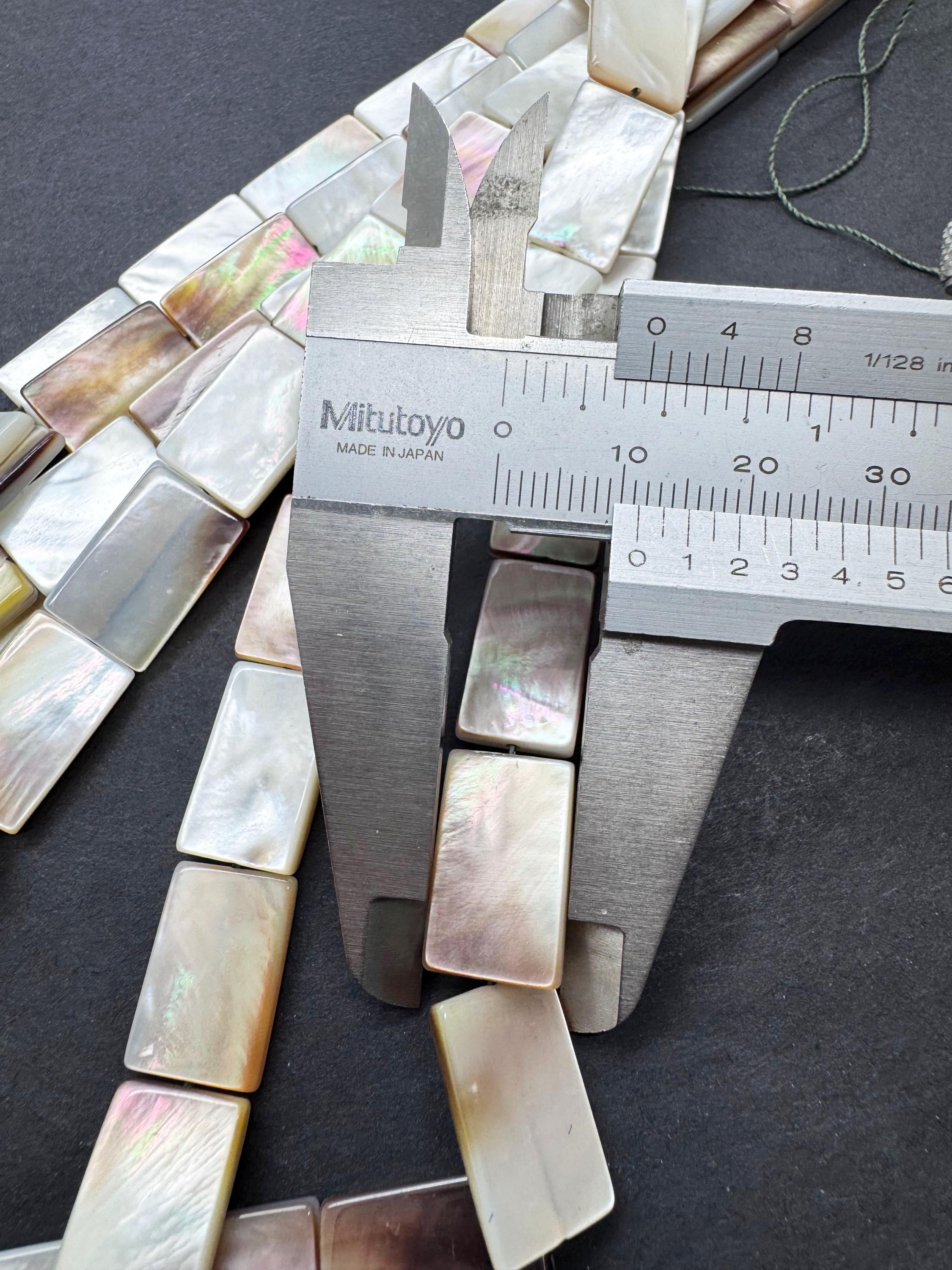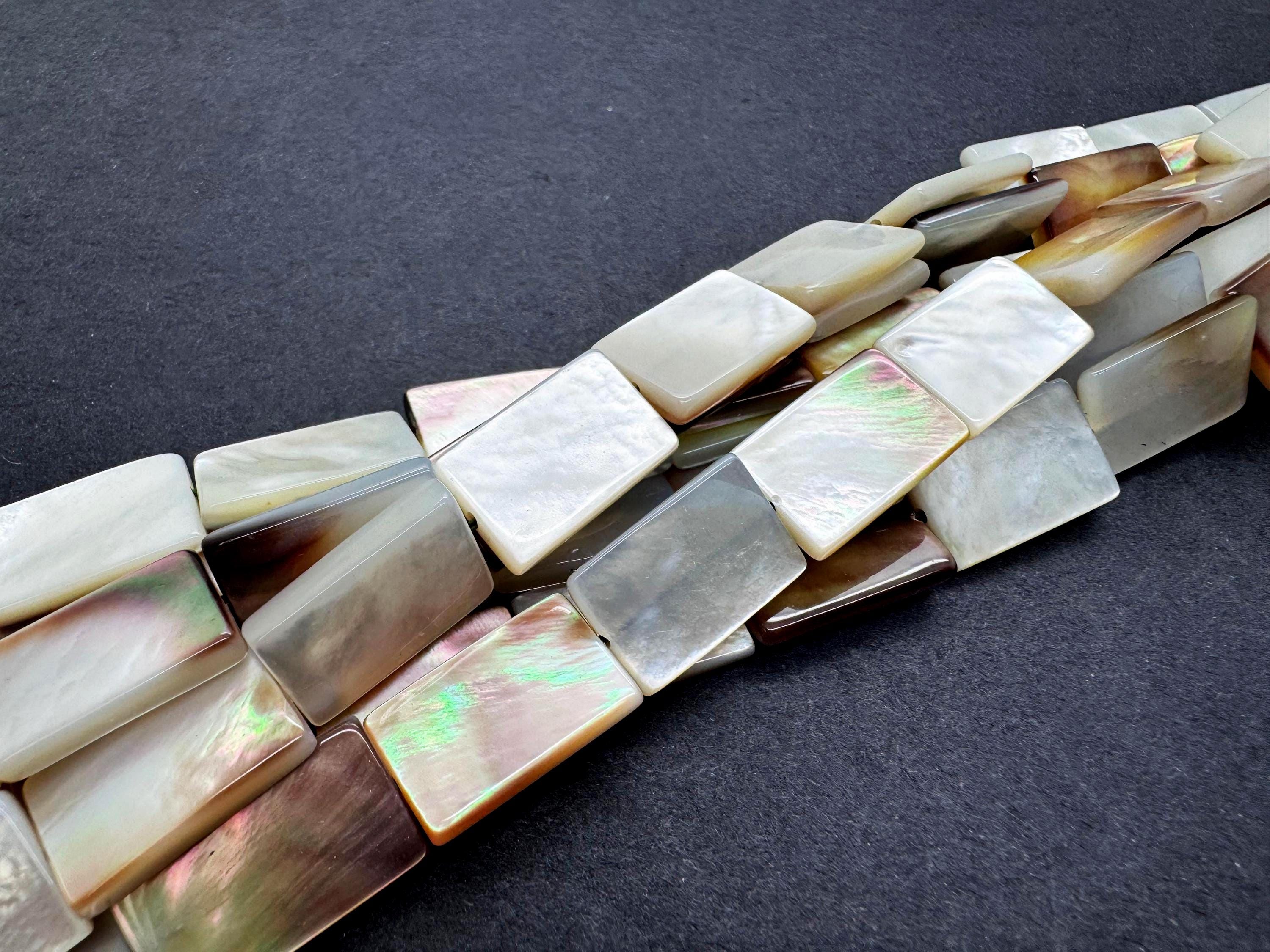 Add a touch of oceanic luxury to your designs with these premium Mother of Pearl rectangle beads. These flat "tab" beads are expertly polished to highlight their natural luster, displaying a breathtaking play of color that shifts with the light. Their sleek, rectangular profile provides a clean and modern aesthetic that works beautifully for both minimalist and statement jewelry.