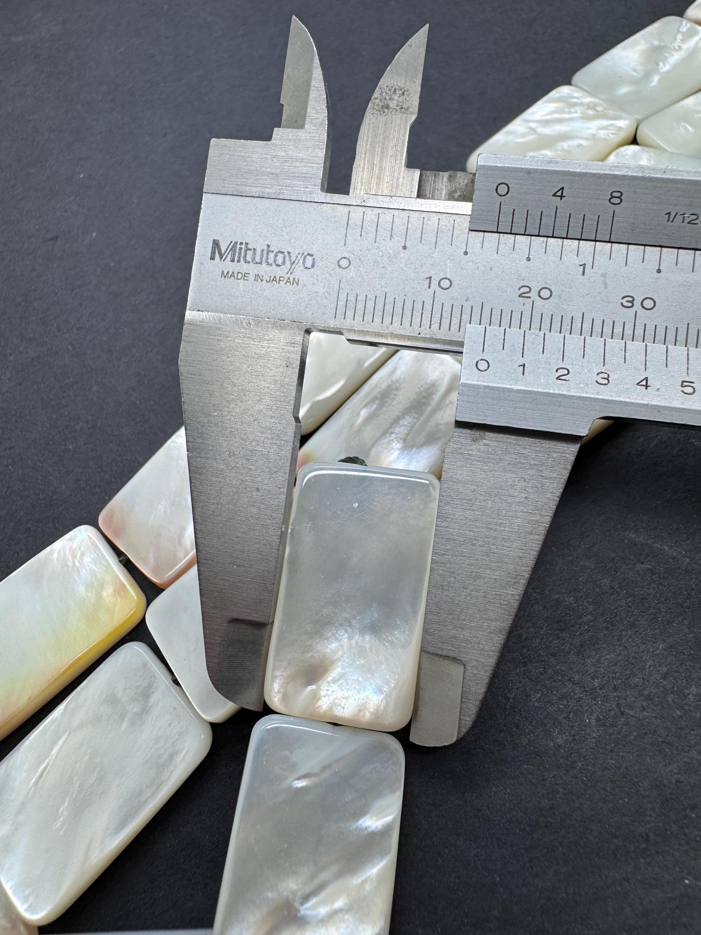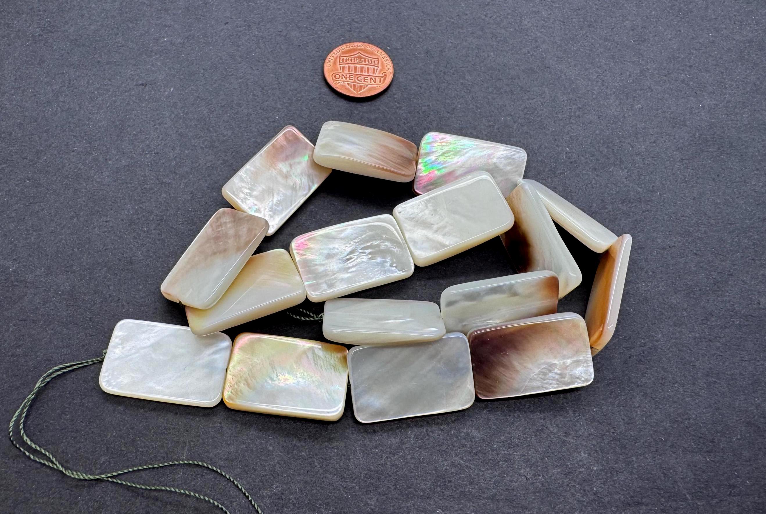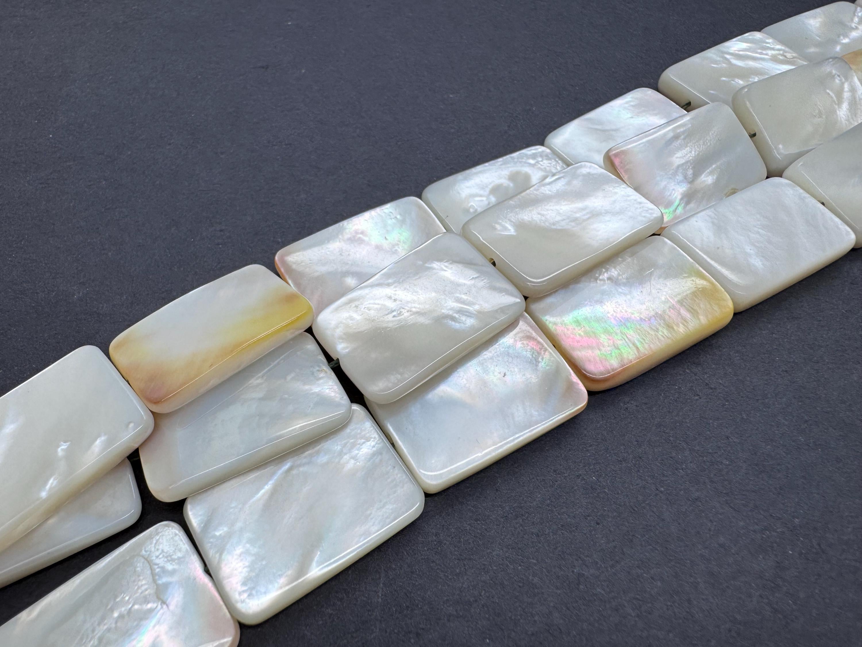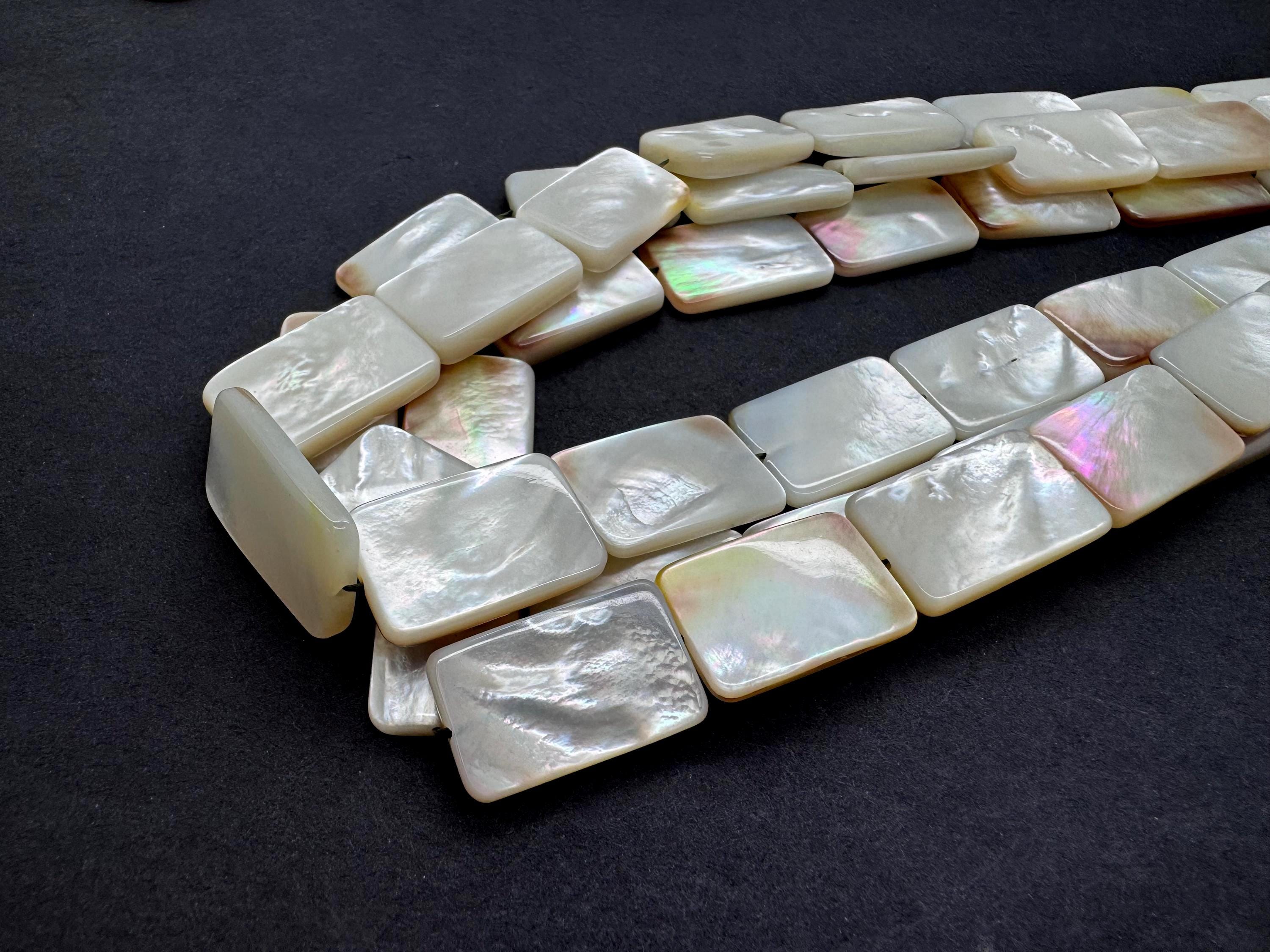 Add a touch of oceanic luxury to your designs with these premium Mother of Pearl rectangle beads. These flat "tab" beads are expertly polished to highlight their natural luster, displaying a breathtaking play of color that shifts with the light. Their sleek, rectangular profile provides a clean and modern aesthetic that works beautifully for both minimalist and statement jewelry.