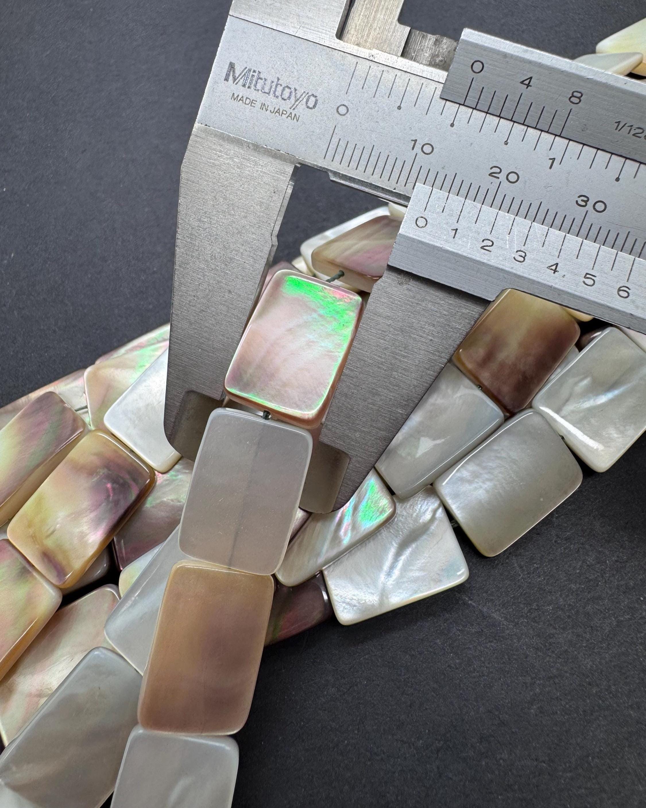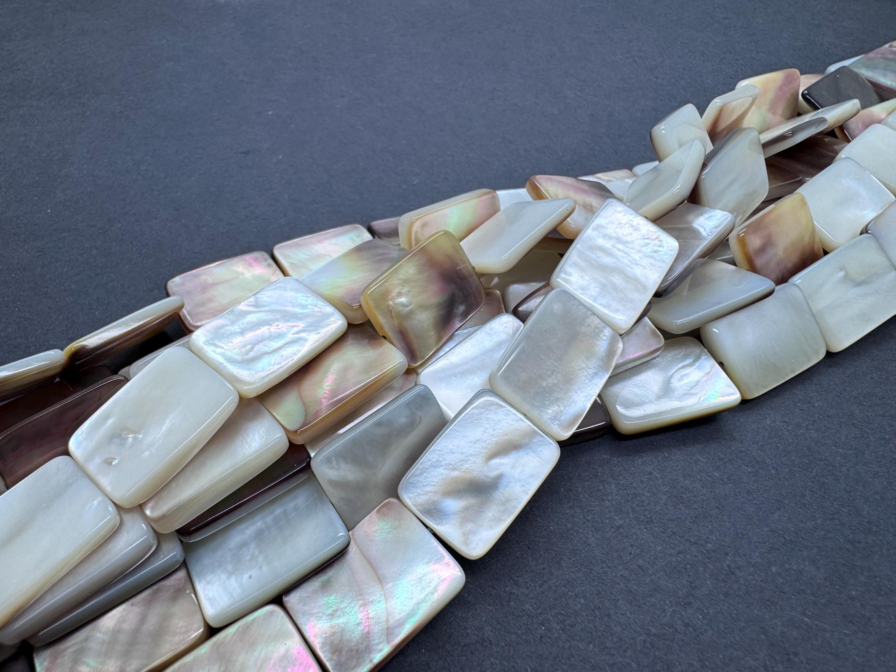 Add a touch of oceanic luxury to your designs with these premium Mother of Pearl rectangle beads. These flat "tab" beads are expertly polished to highlight their natural luster, displaying a breathtaking play of color that shifts with the light. Their sleek, rectangular profile provides a clean and modern aesthetic that works beautifully for both minimalist and statement jewelry.