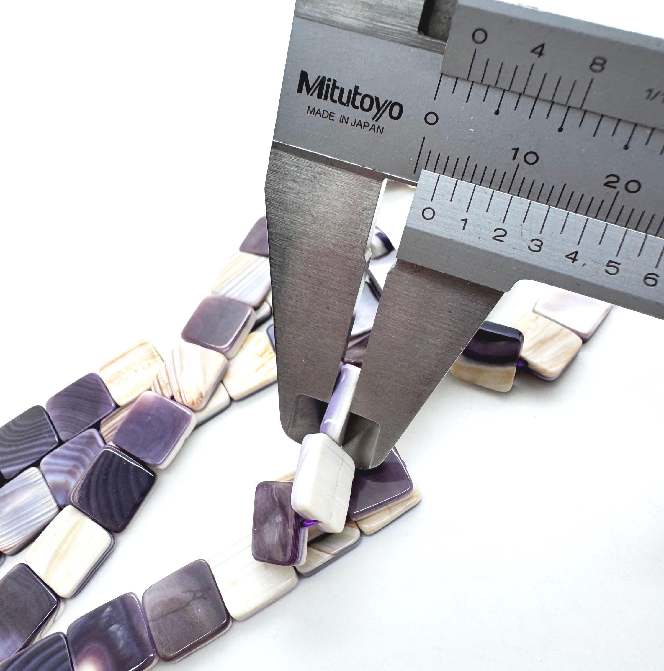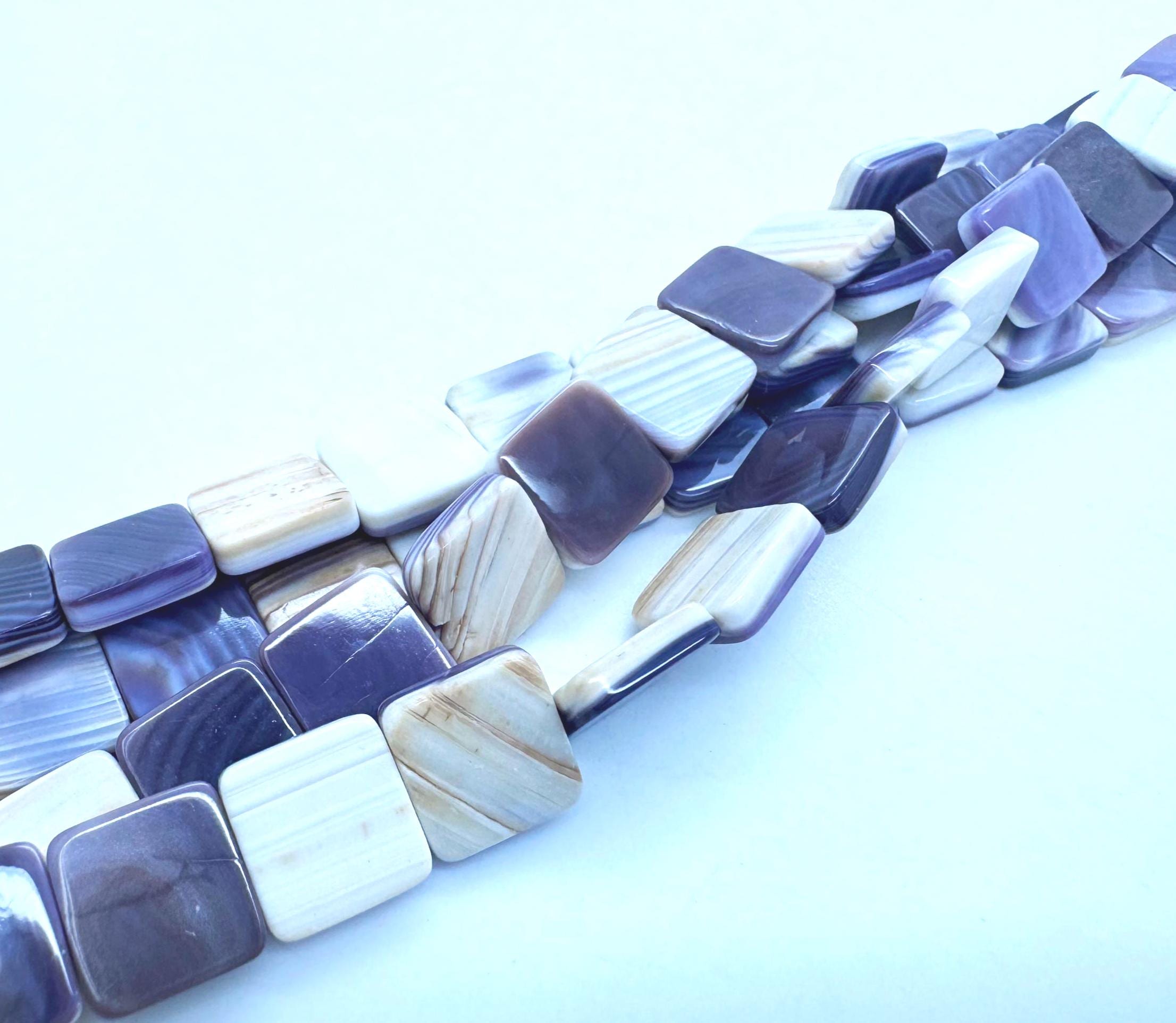 Add a piece of North Atlantic heritage to your designs with these genuine Wampum (Quahog) shell square beads. These flat beads are expertly cut and polished to a high luster, showcasing the iconic high-contrast purple and white patterns that can only be found in the Quahog shell. Their sleek, square profile provides a clean, contemporary look that works beautifully for modern artisan jewelry.
