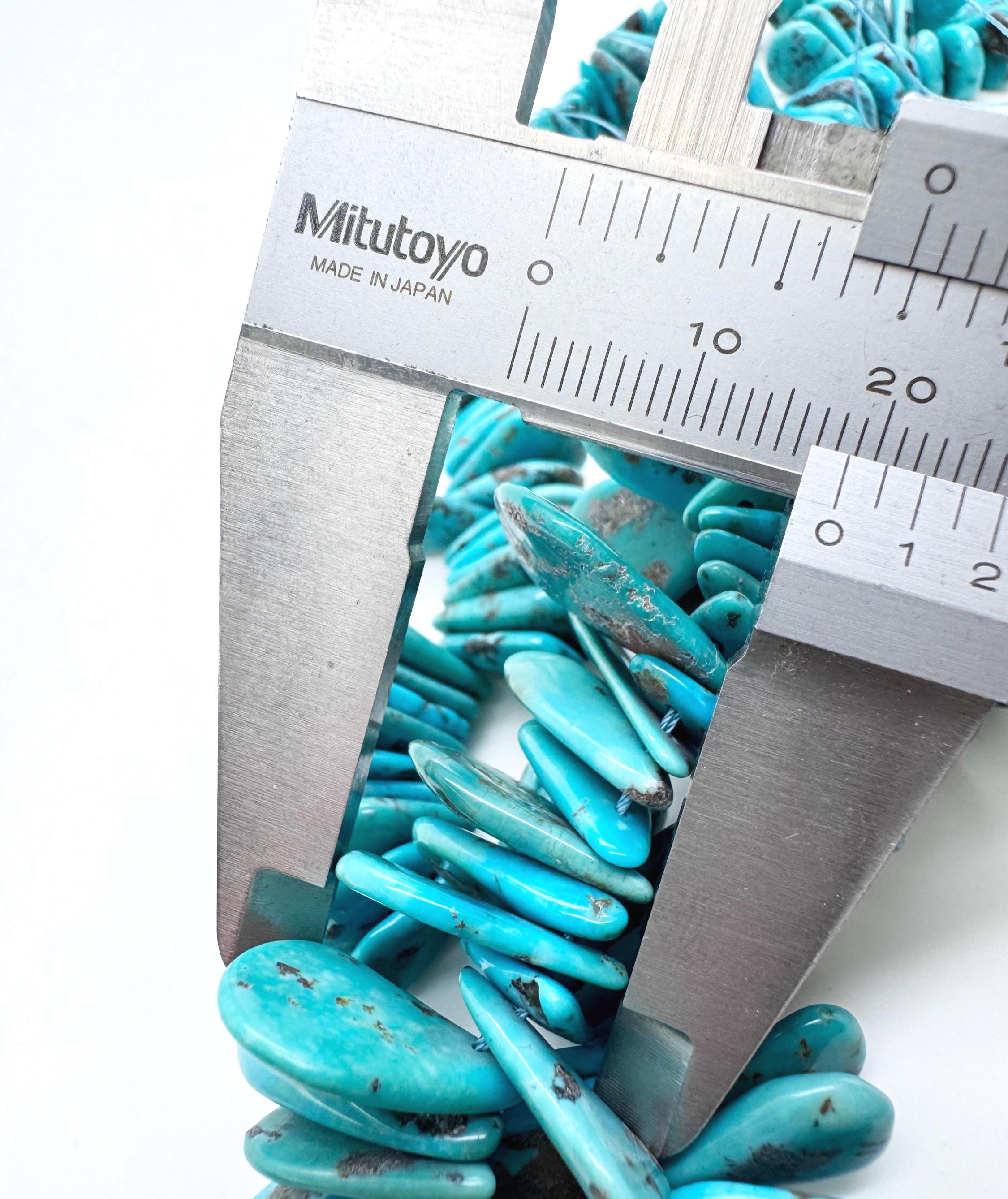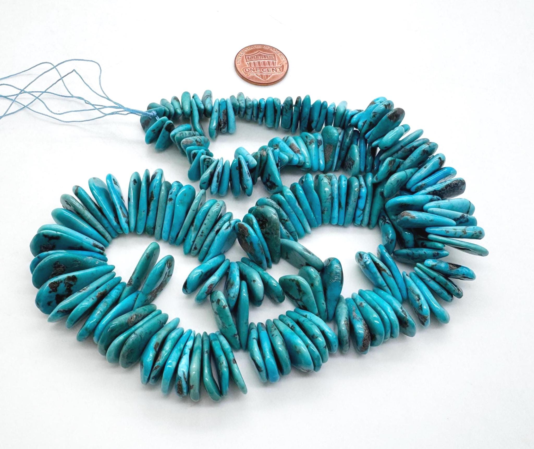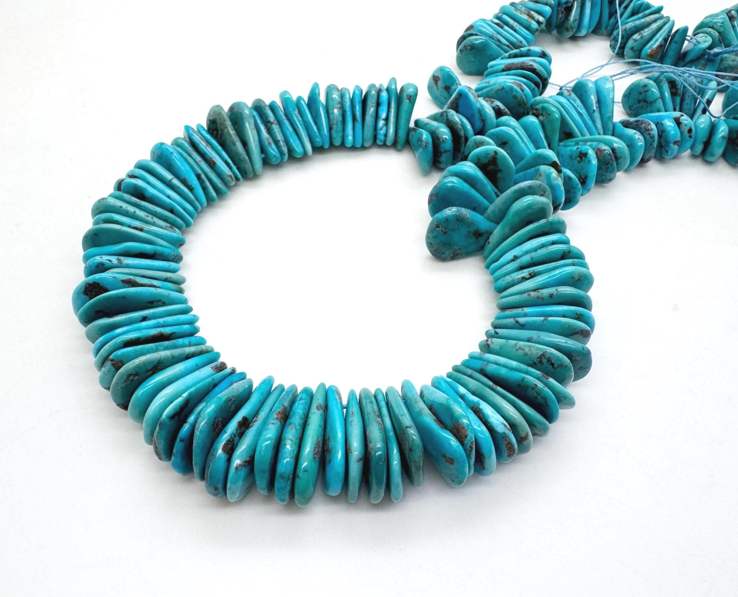 Elevate your artisan designs with the vibrant, sun-drenched energy of genuine Kingman Turquoise. This premium strand features expertly cut flat tab beads that are masterfully graduated, fanning out from 11mm at the ends to a bold, striking 18mm center focal. Sourced from the legendary Kingman mine in Arizona, these tapered slabs showcase a clear, high-saturation "Sky Blue" color with a fine, natural matrix that ensures every design is 100% unique.