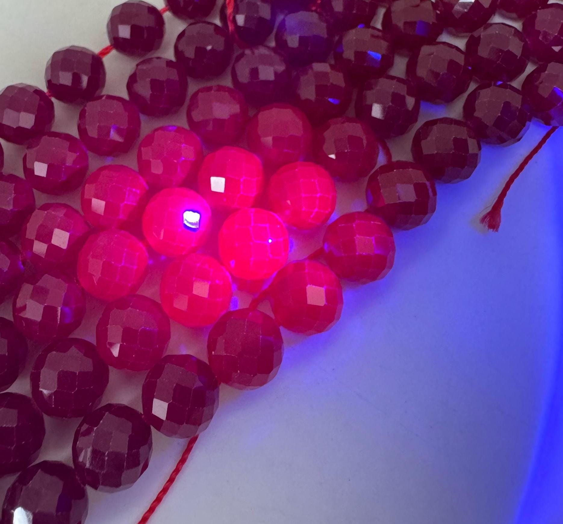 Elevate your designs with the timeless luxury of genuine Red Ruby. These 8mm round beads have been expertly faceted with a diamond-cut pattern that maximizes light reflection, showcasing the stone's rich, saturated pinkish-red tones. Sourced for their vibrant color and professional polish, these rubies offer a perfect balance of natural character and sophisticated brilliance.