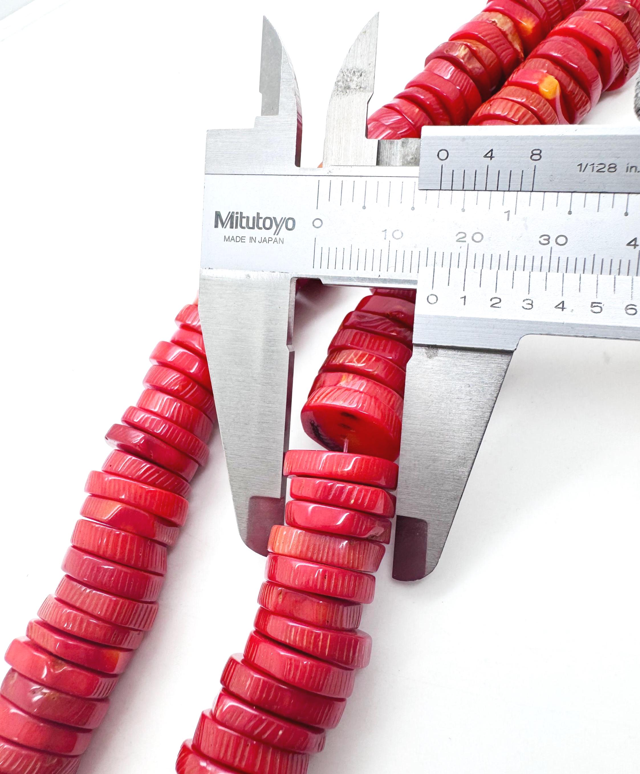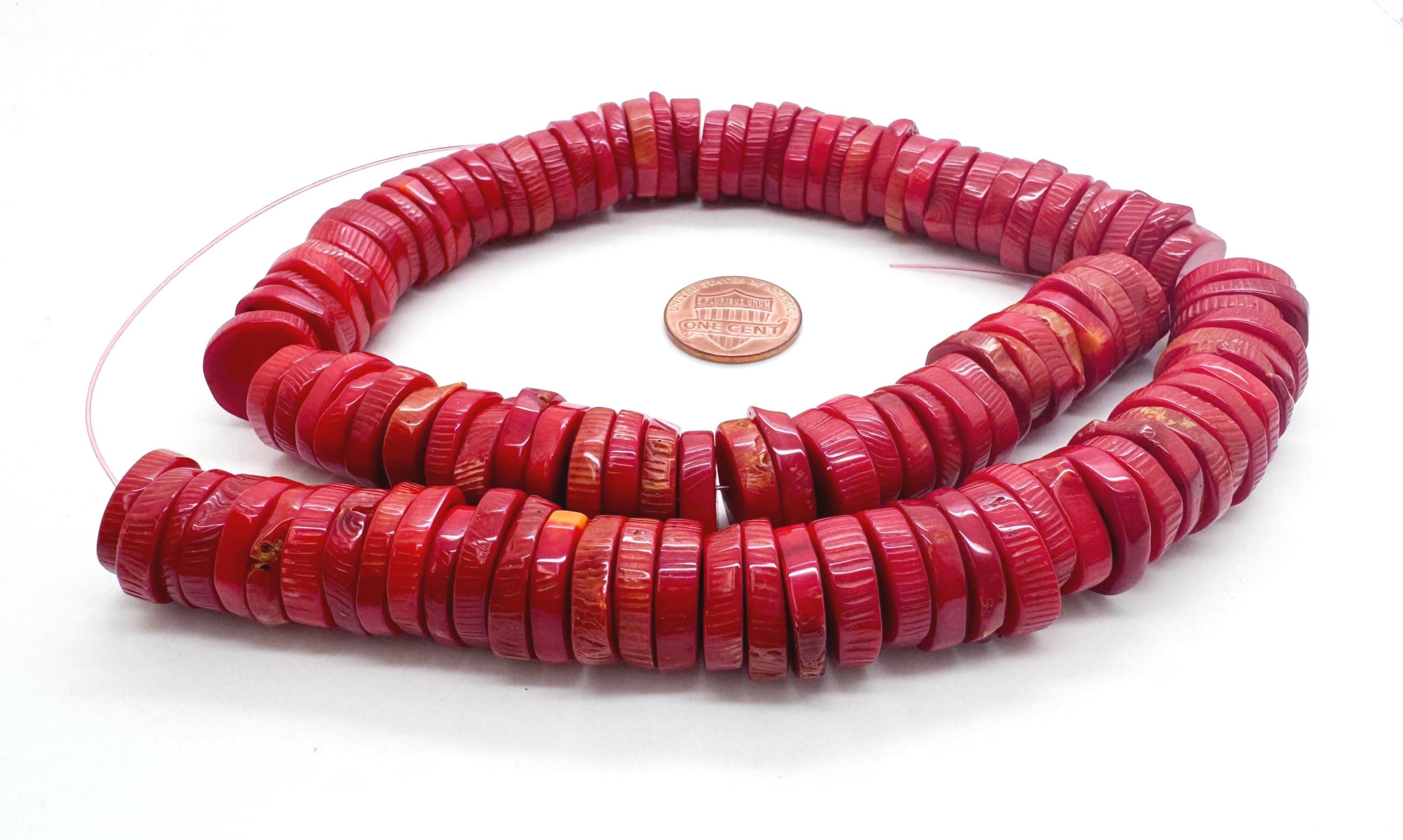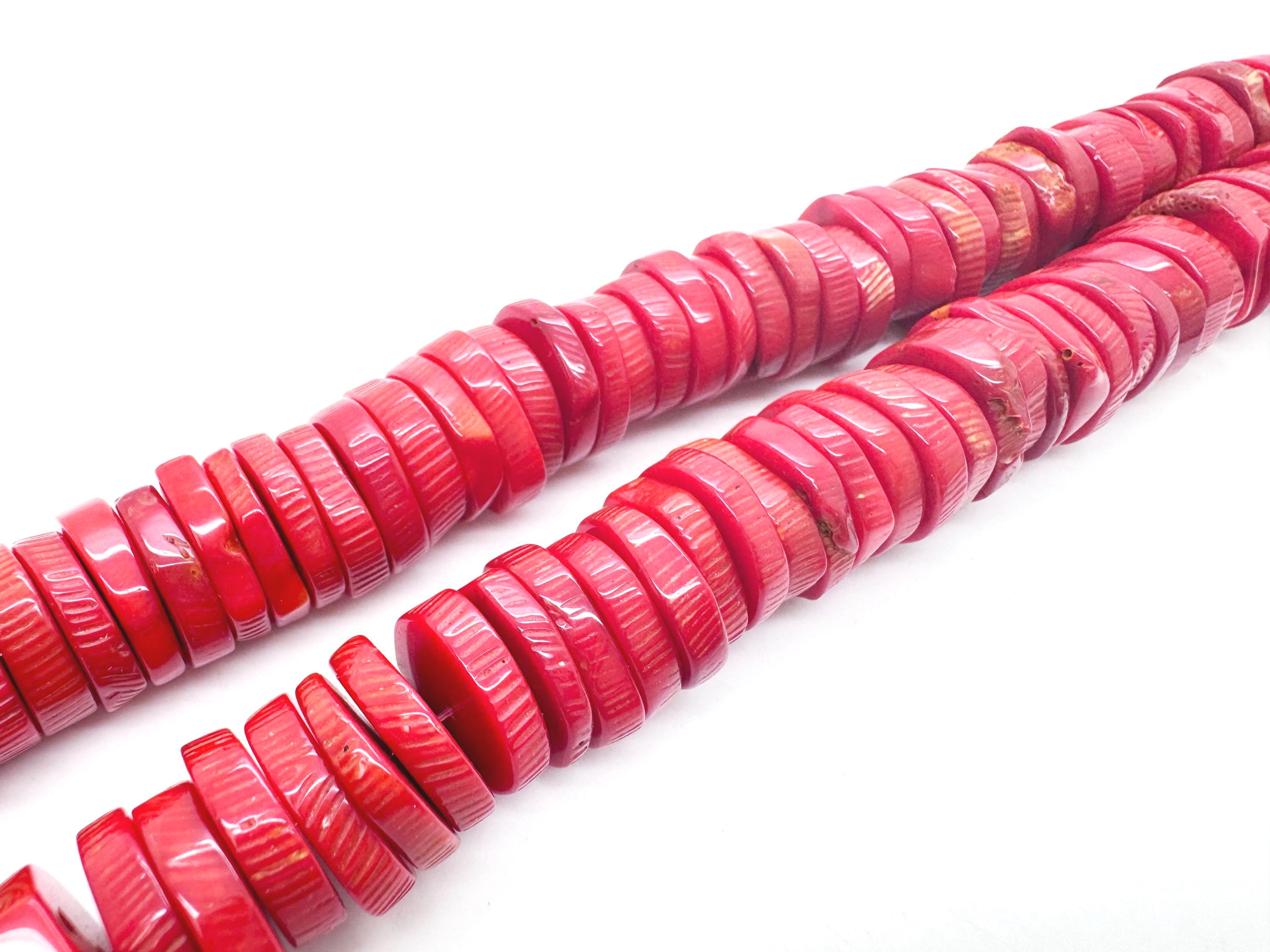 Ignite your next design with the striking energy of these Red Sponge Coral heishi discs. These beads start as natural white sea coral and are expertly dyed to achieve this rich, saturated crimson red while preserving the beautiful organic grain of the species. Each bead is polished to a smooth finish, offering a large 16mm profile that provides a clean, contemporary line perfect for high-end artisan jewelry.