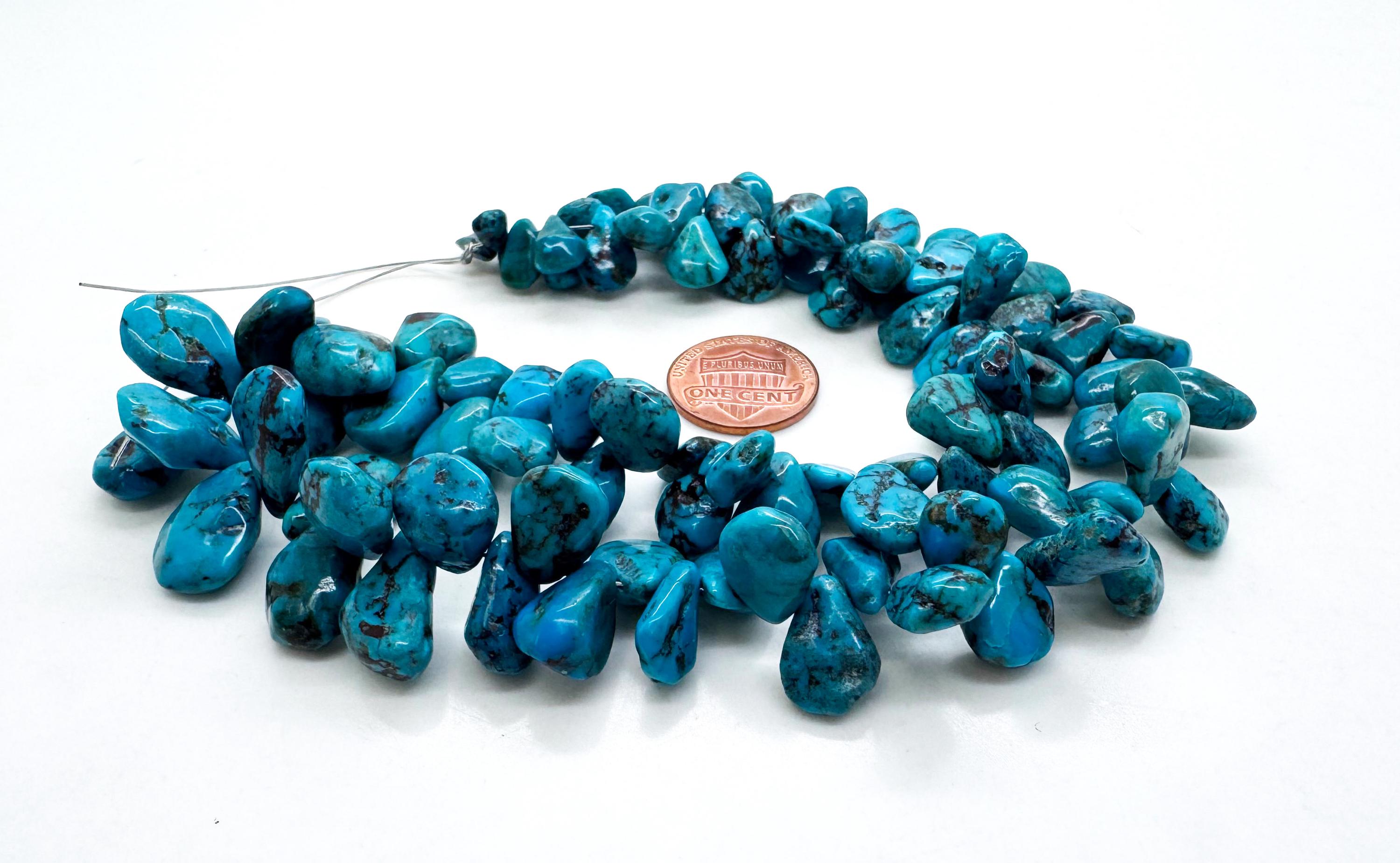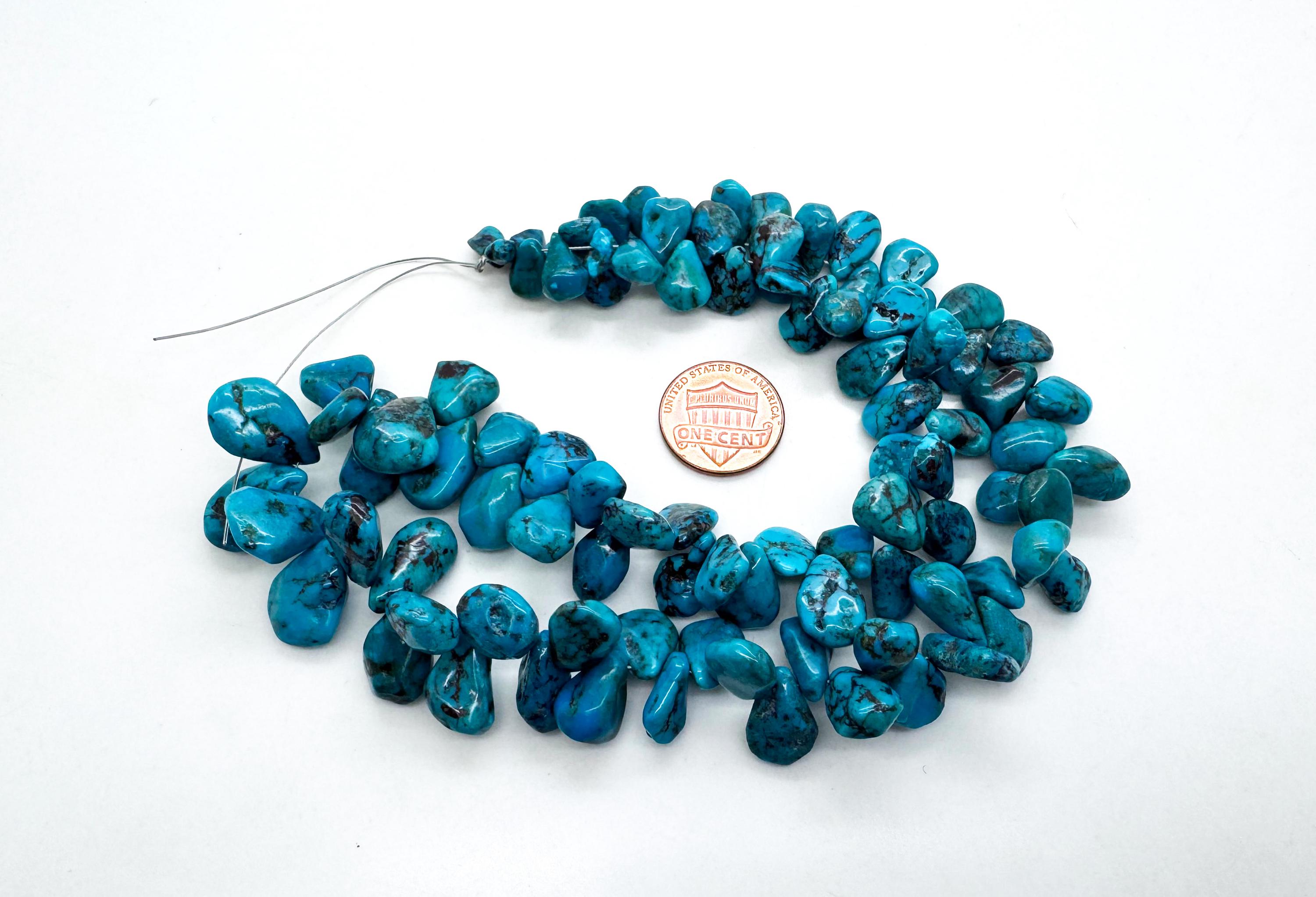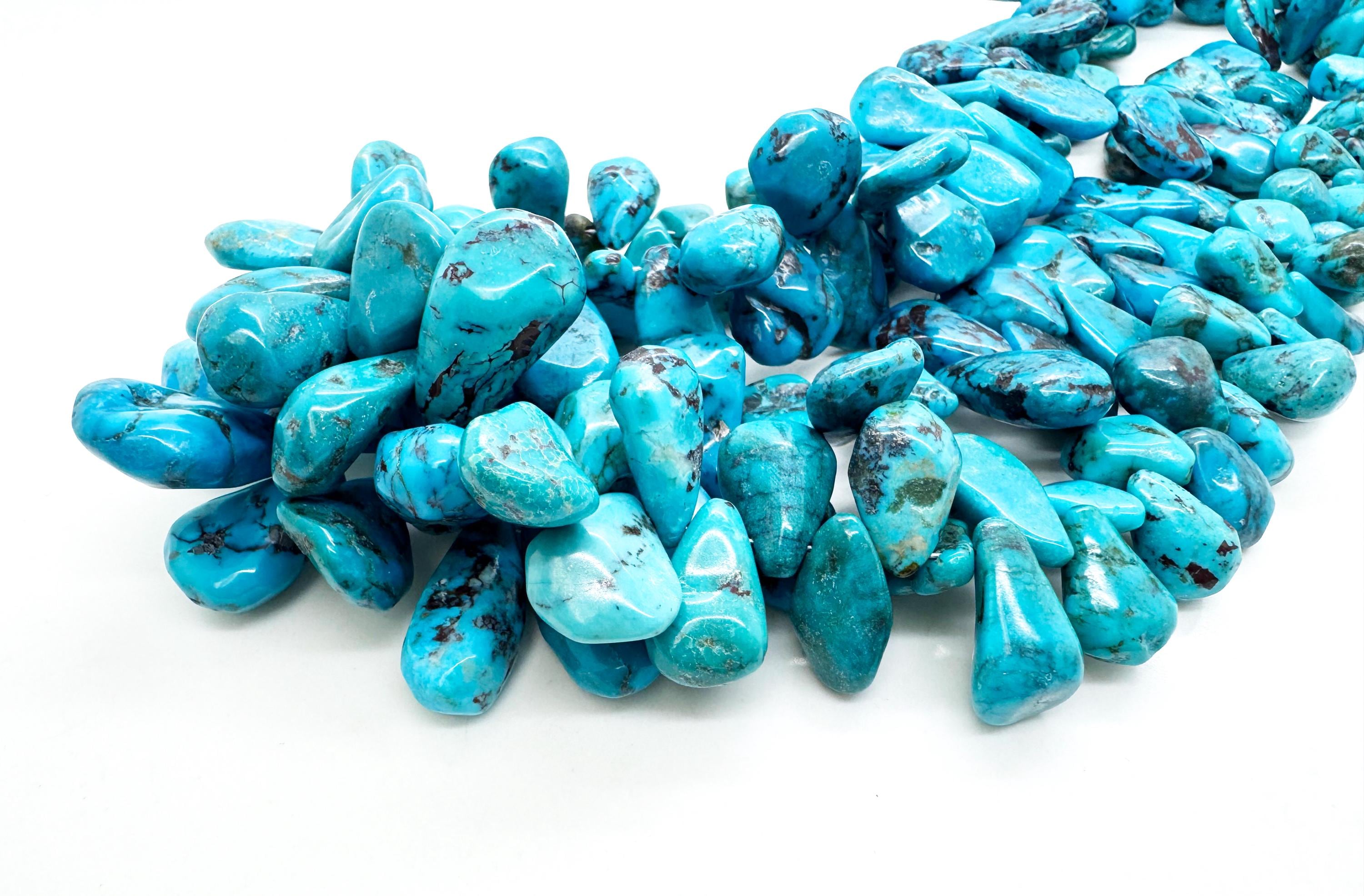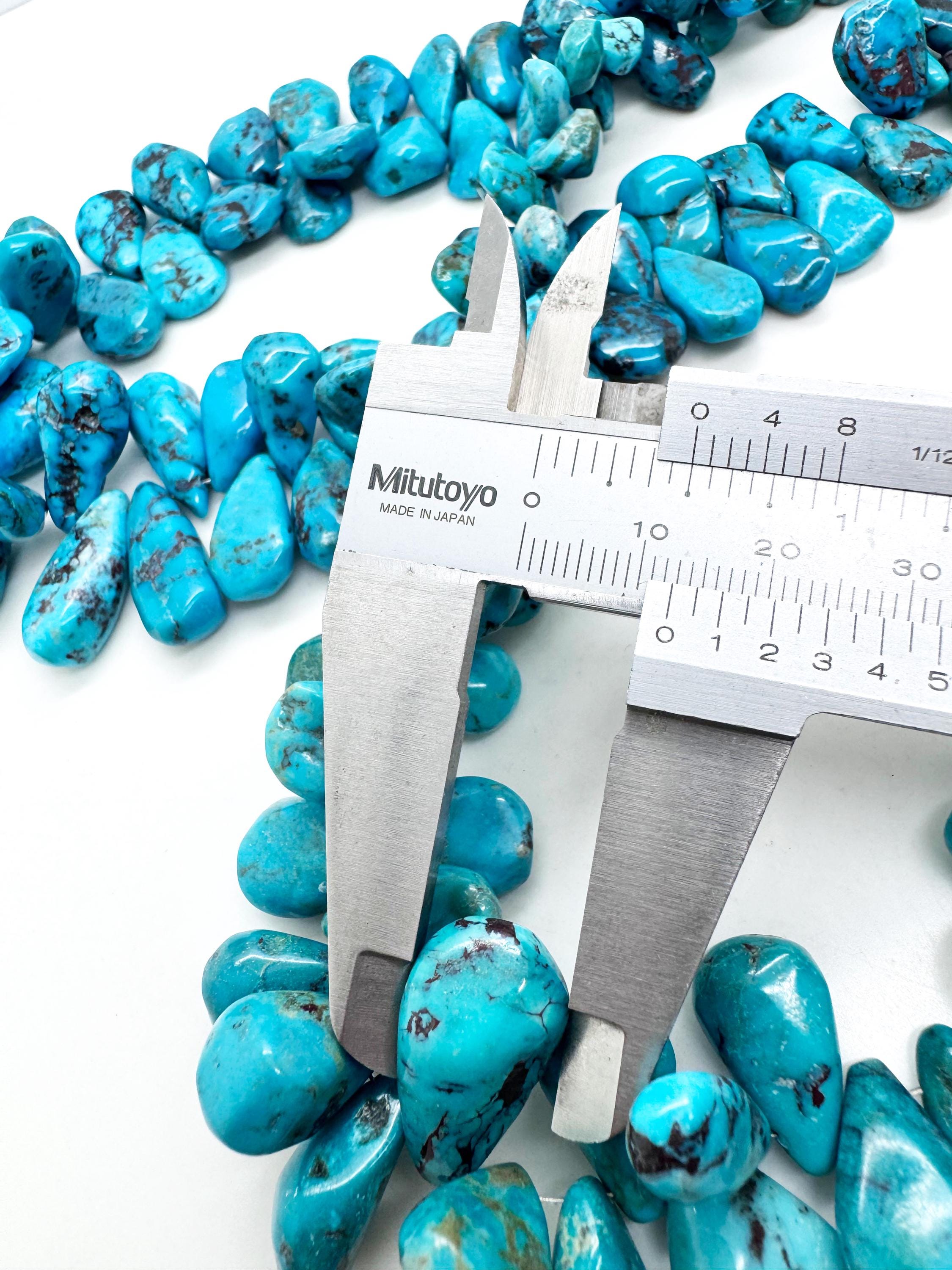 Add bold, earthy beauty to your designs with these stunning graduated turquoise nugget beads. Featuring rich blue tones with natural black matrix, each strand offers a unique, organic look—perfect for statement jewelry.