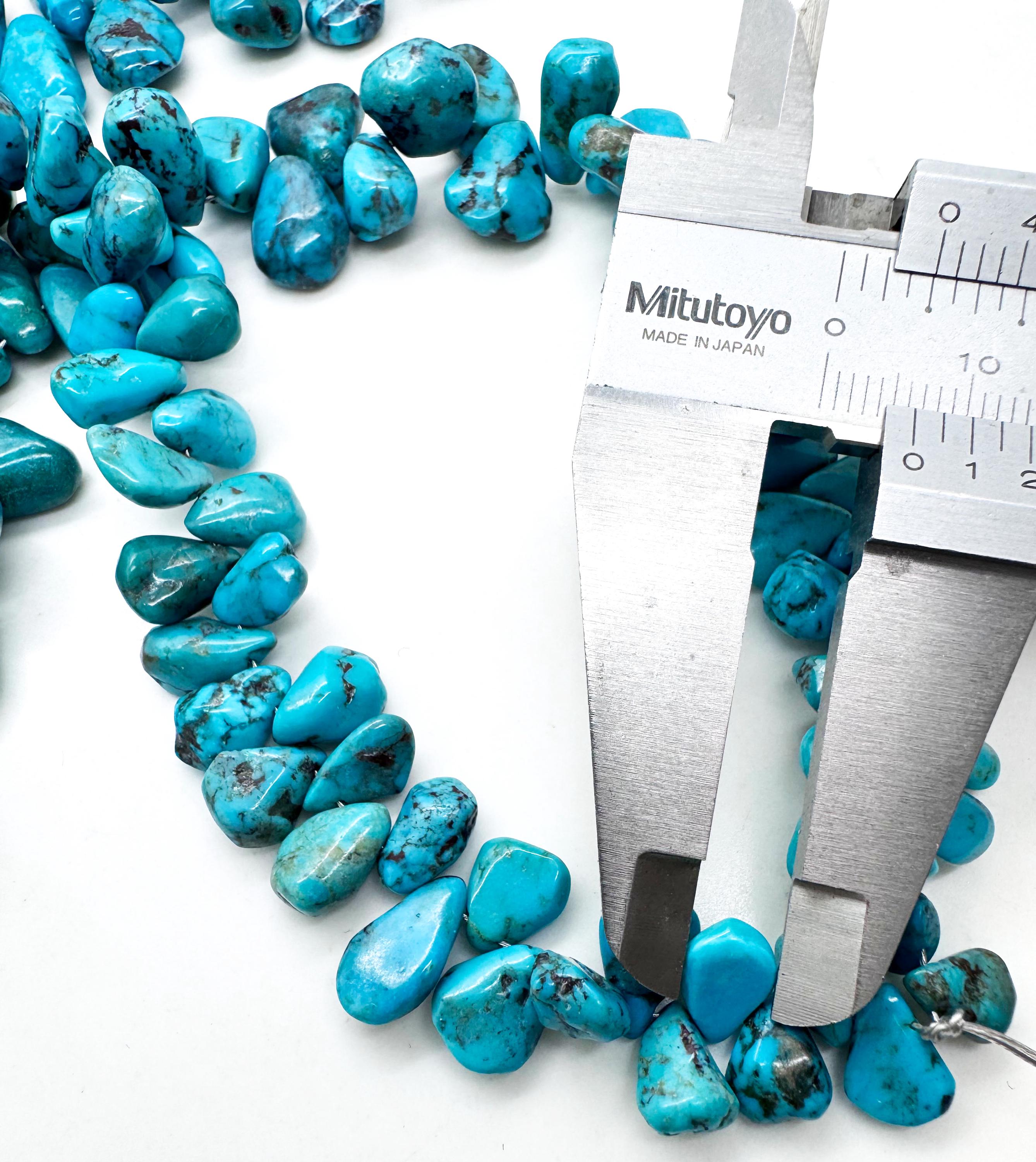 Each strand is unique. Due to the natural characteristics of turquoise, variations in size, shape, color, and matrix are expected. Some beads may show irregular shapes and natural inclusions, adding to their authenticity and charm.