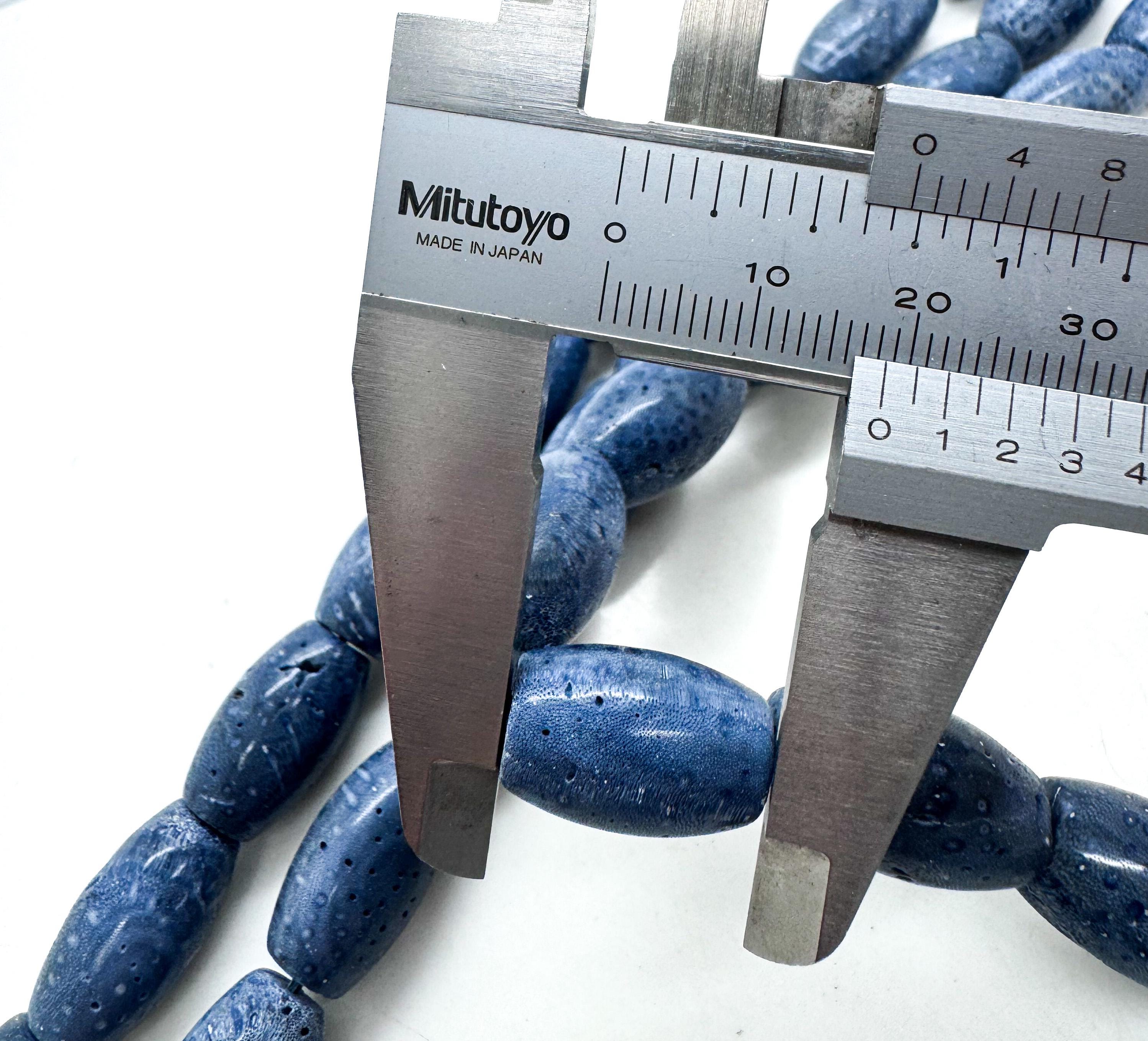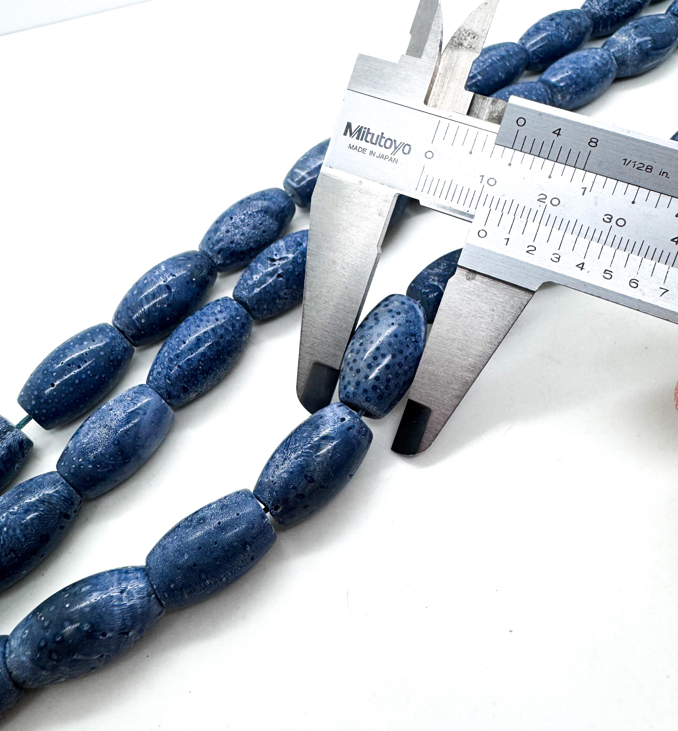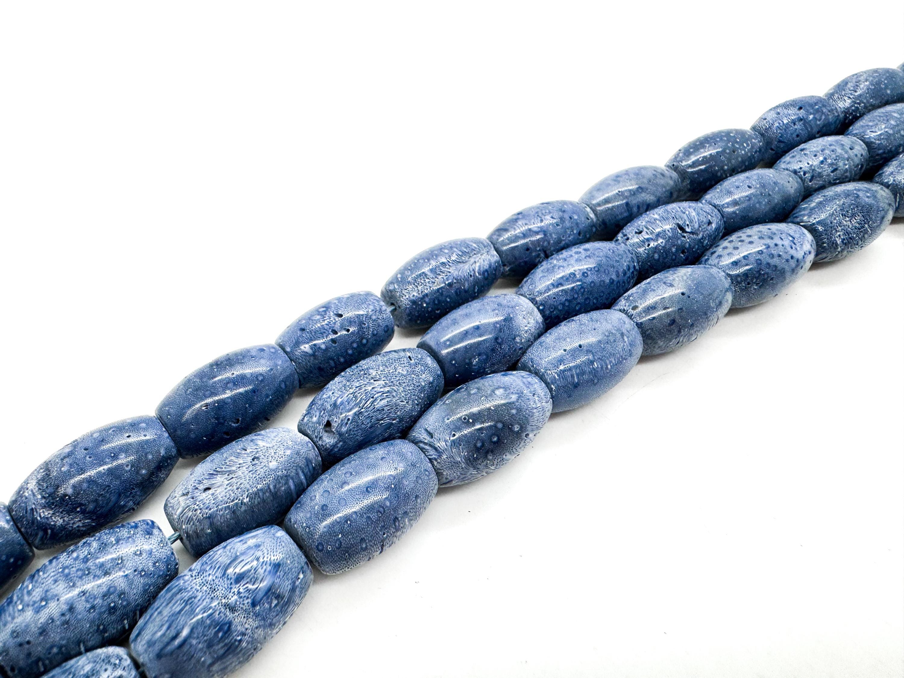 Command attention in your next jewelry design with the raw, coastal elegance of these genuine Blue Sponge Coral barrels. Sourced for their rich indigo saturation and iconic porous texture, these beads offer a perfect blend of organic grit and polished refinement. Each large cylinder is finished to a smooth luster that emphasizes the intricate, map-like patterns of natural sea coral, providing a professional and sophisticated aesthetic for any artisan project.